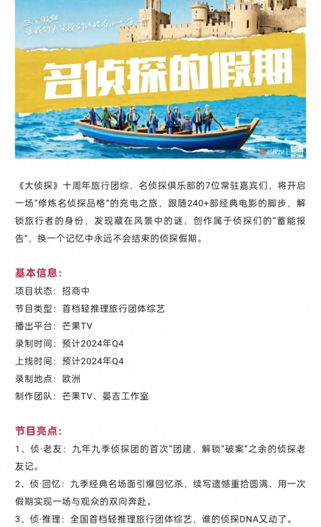 《大侦探》要录旅游团综了《名侦探的假期》。
