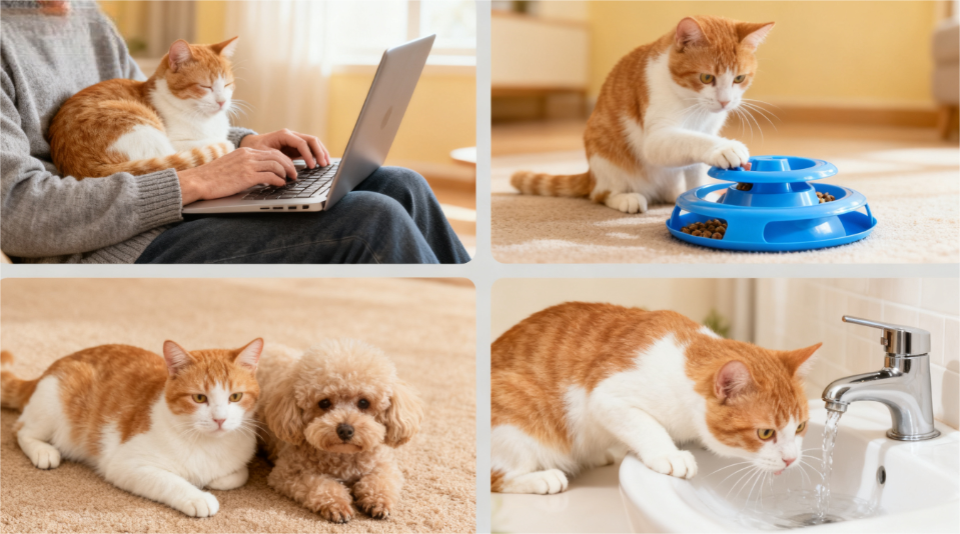 喂食遵循 “定时定量”:幼猫每日 3-4 餐,成猫每日 2 餐,每餐 80-100 克,避免肥胖引发糖尿病。保证 24 小时流动饮水,多数个体乳糖不耐受,禁用牛奶,可用无乳糖羊奶粉替代。