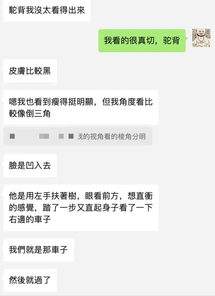 这个时候我就已经有点服了。我说:“大爷,你说的都对,确实,穿着像农民工,深绿色的邋里邋遢的衣服,头发像好几天没洗,脸确实没有血色,但是他的脸黝黑,不是你说的白。”那不是脸黑就一定没血色,不一样,你们看黑人的脸够黑了,但是是健康的有血色的光泽