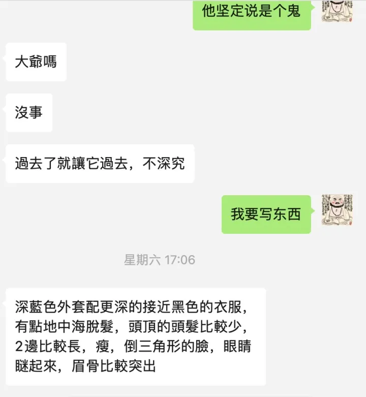 好嘛,这句一出,我彻底服了,我大爷永远都是我大爷啊,大爷讲完我就把样貌跟副驾对了对,准备把这样惊险的经历给大家讲出来,想给大家一些经验,遇到这种事儿要怎么处理。关于这个死鬼,我还是有很多问题,我就继续问老头。