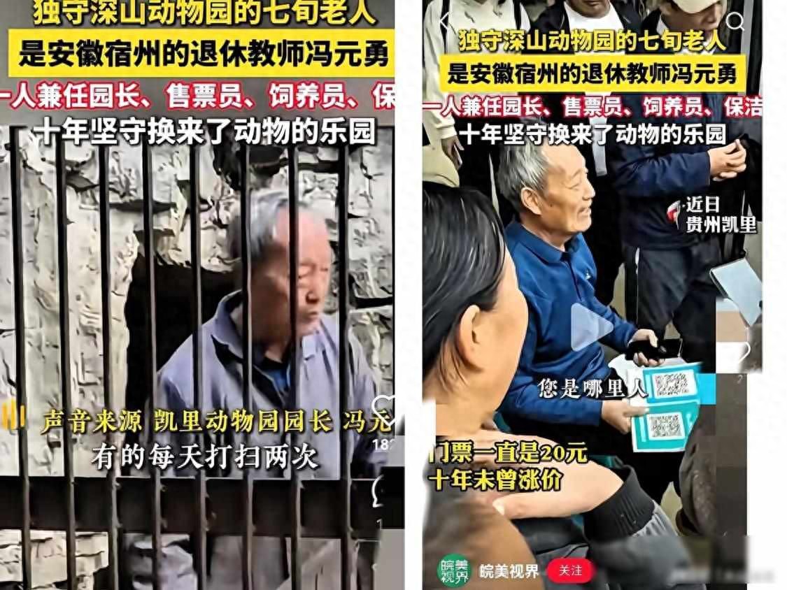 在贵州凯里市的后山里,藏着一座小动物园,它就在华鑫高级中学的后面,这个园子不算大,占地三千多平方米,里面养着老虎、狮子、黑熊、秃鹫这些受国家保护的动物,还有一只会说话的小鹦鹉,能说“您好”和“恭喜发财”,园长冯元勇今年已经七十岁了,他一个人包办了所有事情,从卖票扫地到喂食看门,就连修理笼子也亲自动手。
