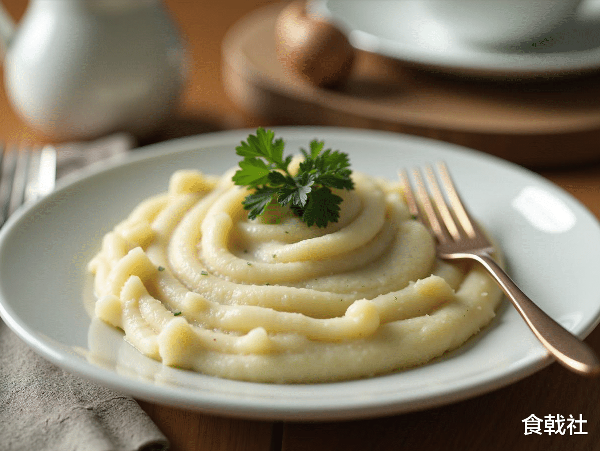 第二道,土豆泥界的“爱马仕”。土豆是最平价的食材,但做好了绝对惊艳。将土豆蒸熟压成泥,加入温热的牛奶、一小块黄油和少许海盐,搅拌至顺滑细腻。然后,关键一步来了!找一个好看的碗,把土豆泥压实倒扣出来,淋上一勺黑胡椒酱汁,再撒上帕玛森芝士粉。放入烤箱或空气炸锅烤五分钟,让表面微微焦糖化。这份土豆泥绵密、奶香十足,表面的芝士焦香酥脆,味道和西餐厅里的招牌土豆泥一模一样,成本却不到五块钱。