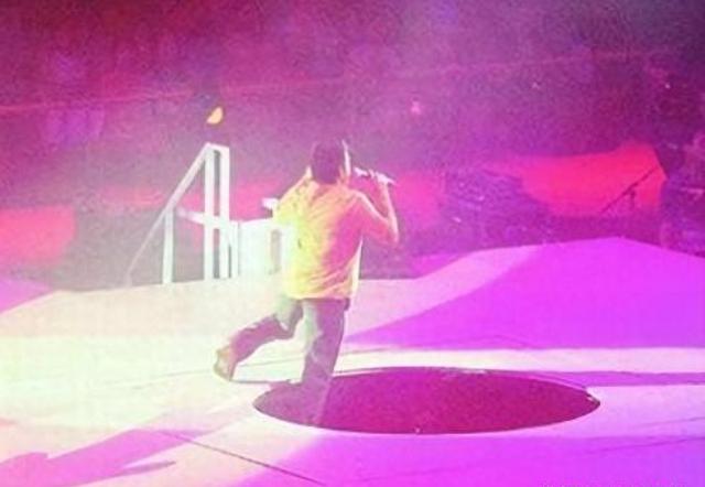 演出时,因为升降台早早落地,让林子祥意外失足坠落下三米深的机关。