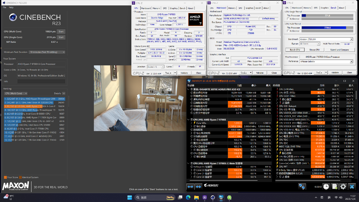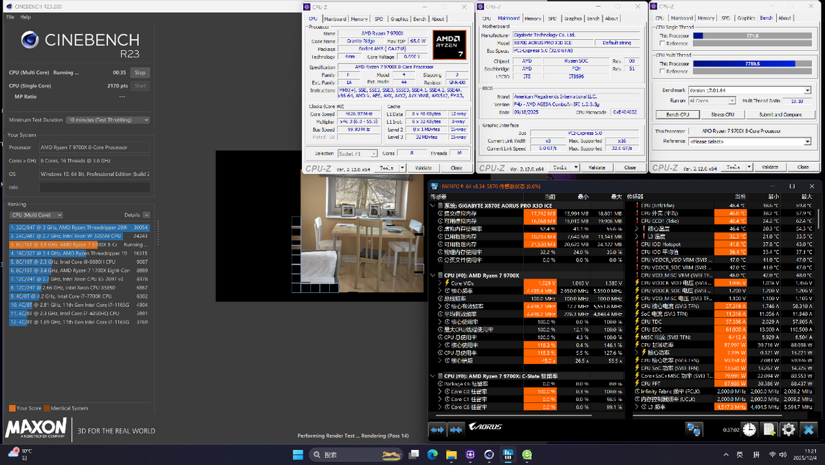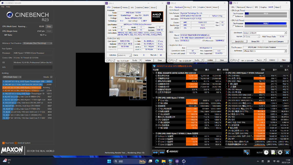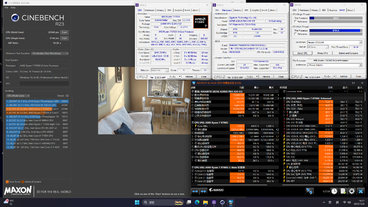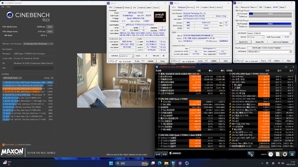 我们使用当前最热的技嘉X3D系列主板中的X870E AORUS PR0 X3D ICE电竞冰雕,来测试下从这颗R7 9700X处理器 TDP 从65W提升到105W之后,能有多大的性能提升。同时,我们使用红外拍摄,来看看主板供电部分在TDP提升后,温度有多大的变化。这次,散热器我们使用的是Cooler Master的龙牙二代360水冷。