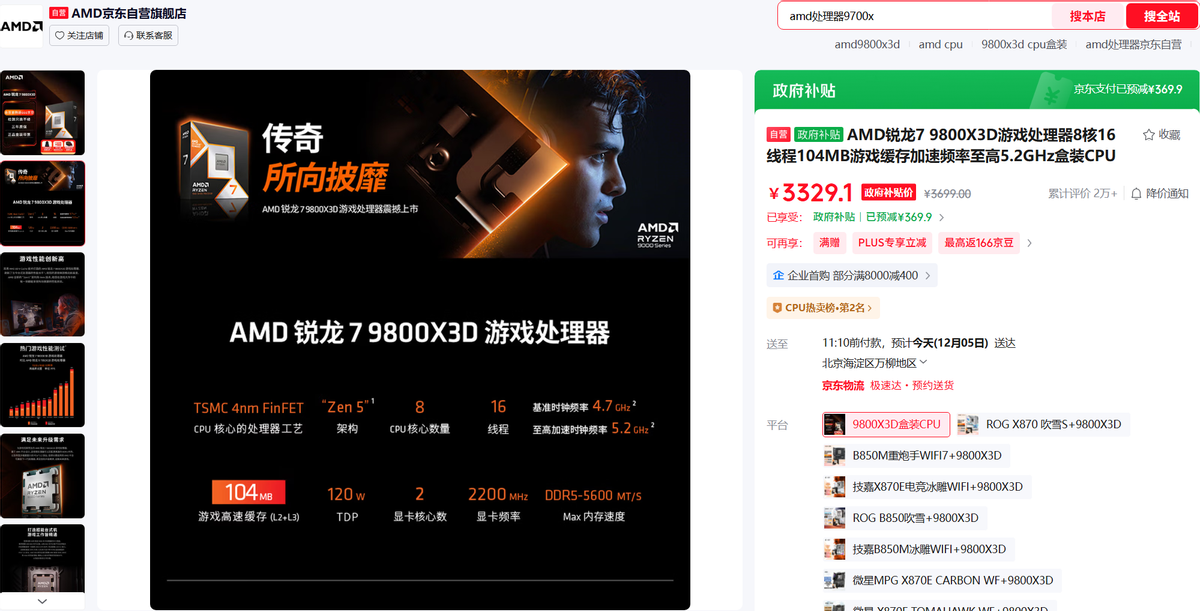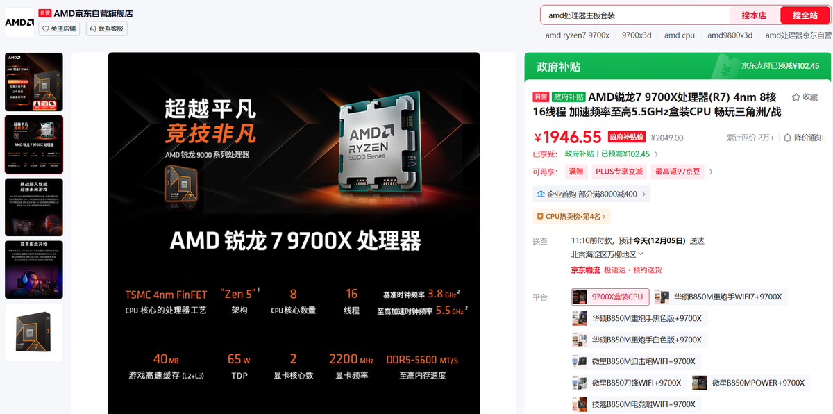 于是不少有预算现在装机的朋友,不得不重新考虑下配置,之前看好的R7 9800X3D处理器,在当前市场环境下,一定是要超预算的,于是被大家“忽视”的2k内最具性价比的处理器R7 9700X再度成为中端市场装机的主流。