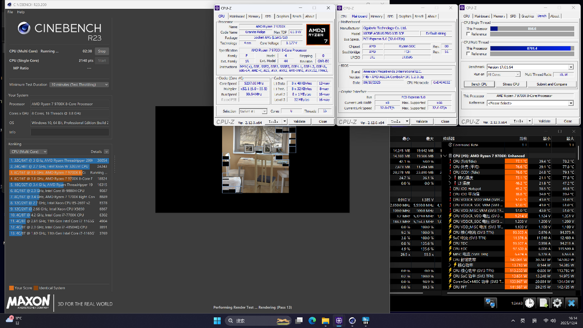经过测试,我们这颗9700X可稳定运行在90Level 3,性能表现相比PBO关闭时又有所提升。