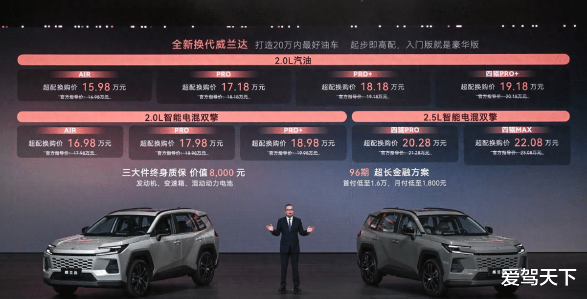 在上市五年多后,丰田威兰达于2025广州车展前夕迎来全新换代,并正式公布售价。值得关注的是,全新换代威兰达在原有的动力基础上,新增2.0L混动版本,并将价格拉到16.98万—23.08万元区间,配合全系可享的1万元置换权益,实际换购起步价低至15.98万元。