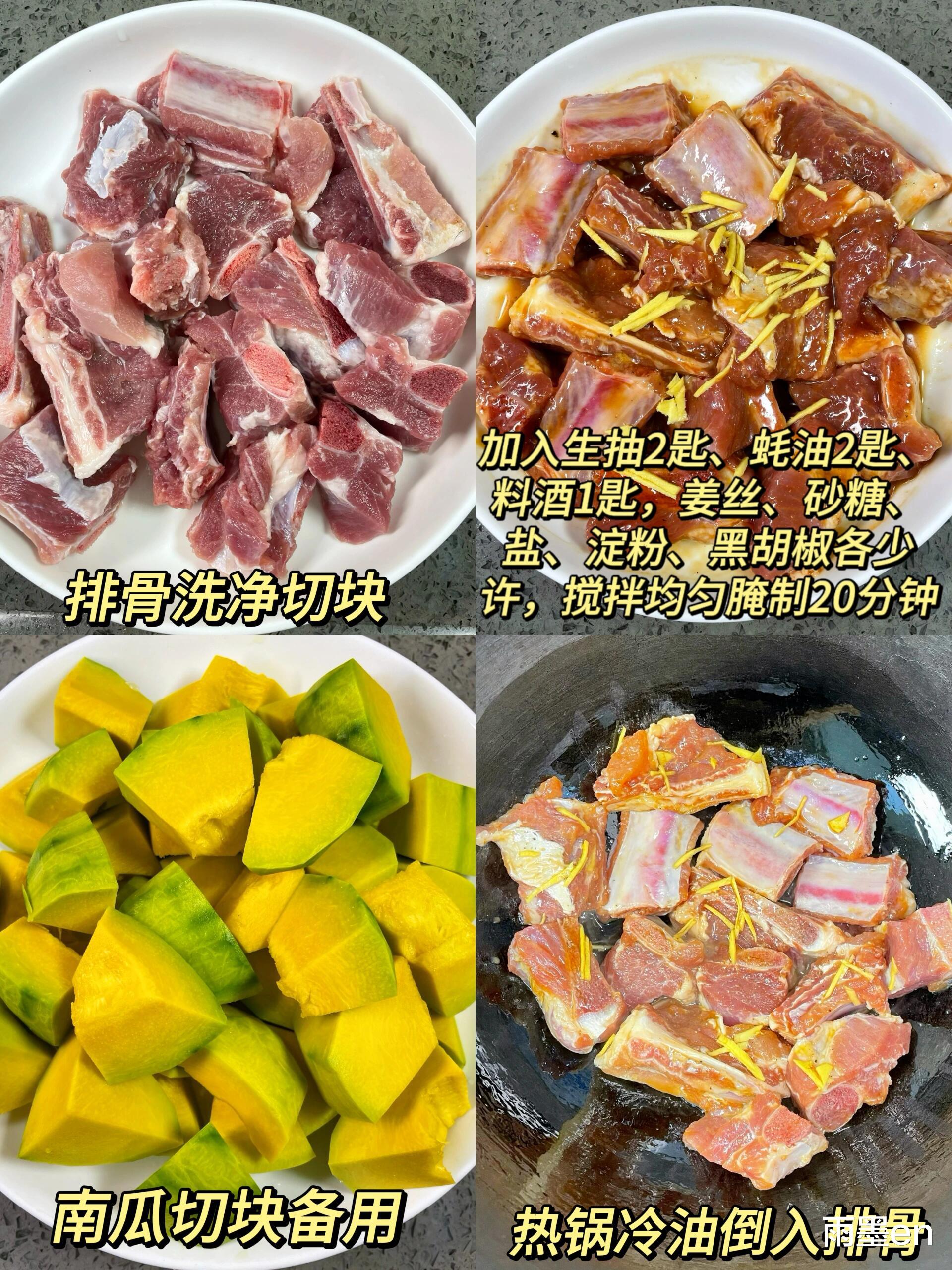 如今自己学着做这道菜,才发现外婆的做法里藏着太多实用技巧,新手也能零失败。首先准备食材:排骨500克、南瓜300克、姜片3片、蒜末2瓣、生抽2勺、老抽1勺、蚝油1勺、料酒1勺、白糖半勺、盐少许、葱花适量。
