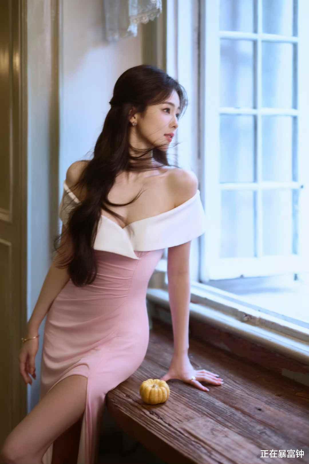 先品品这造型:粉裙+白色一字肩,软fufu得像把樱花和棉花糖搅在一起,开衩裙角一飘,腿长直接焊成“九头身”。最绝的是她那状态,生图里皮肤白得像刚剥壳的荔枝,连发丝都在发光,网友锐评:“这姐的生图是黑粉的‘失业警报’吧?”