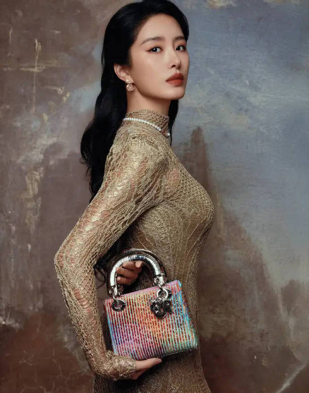 杨采钰穿鎏金长裙明艳动人,化身古典美人