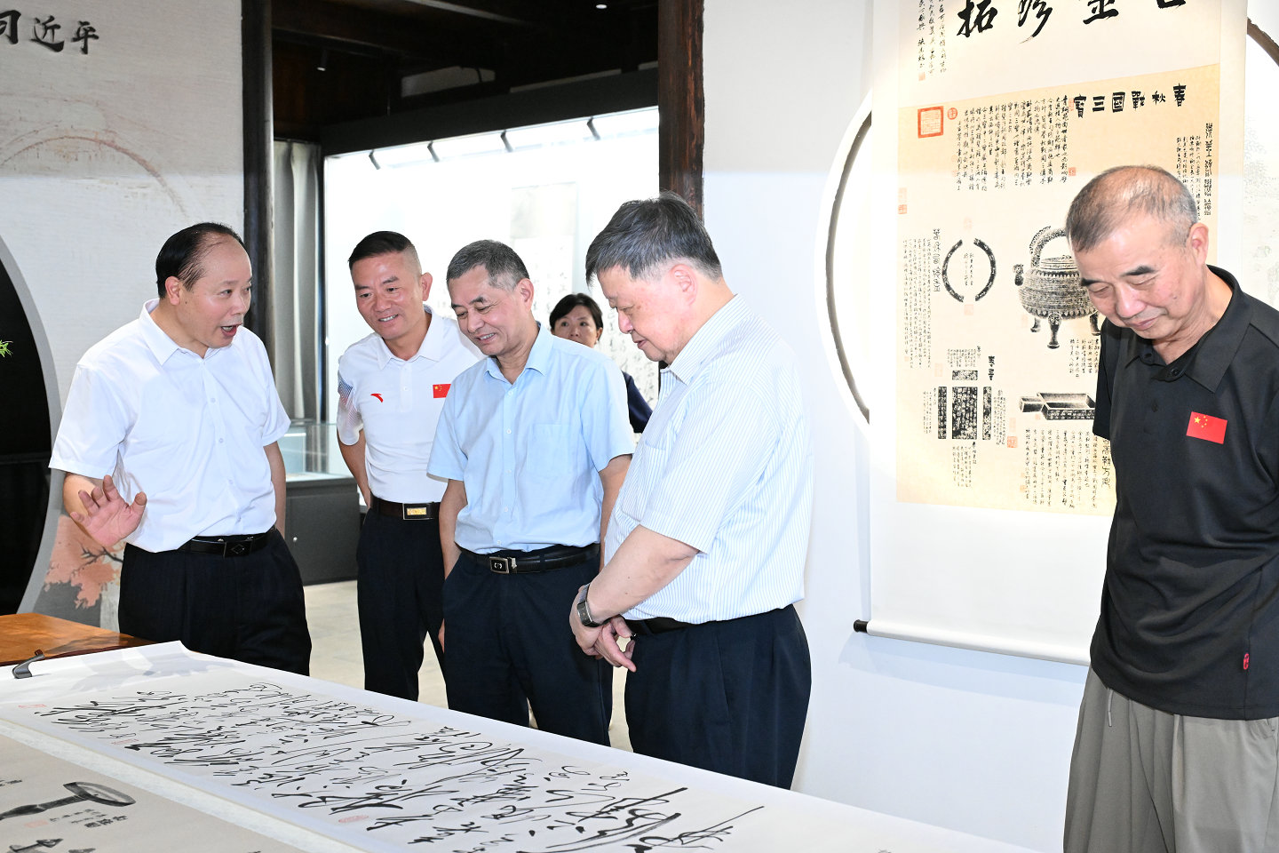 展览开幕式上,军政界、文化艺术界、企业界嘉宾齐聚一堂,共同见证这场兼具艺术高度与情感温度的文化盛宴。中国人民解放军原总政治部副主任兼军委纪委书记、海军上将童世平,南部战区政治工作部原少将副主任陈显国等军政界人士莅临现场,与上海中国画院一级美术师毛国伦、松江区文联主席徐界生、上海市青年书法家协会副主席张丰等文化界名家,以及多位企业家代表一道,为展览送上祝福。