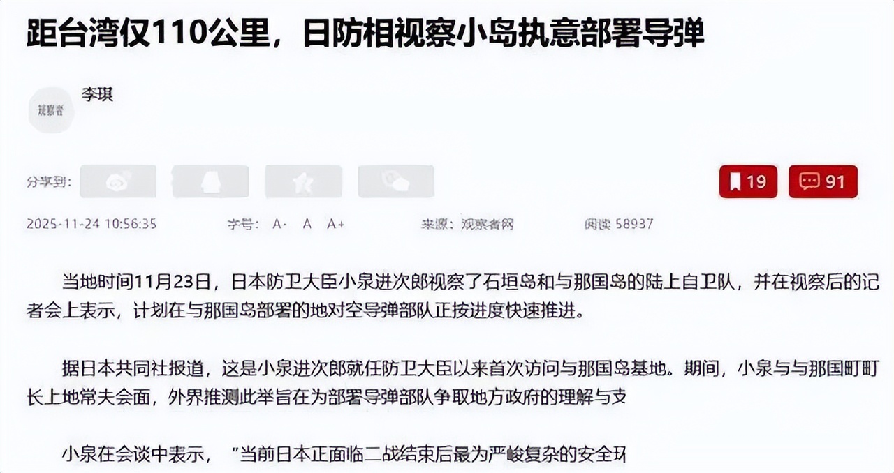 日本小岛导弹化与那国岛是日本冲绳群岛中最西端的小礁,距离东海岸约110公里。这个曾经依靠捕鱼和观鲸维持生计的小岛,如今却被外界广泛解读为日本部署导弹的潜在地点。小泉进次郎在与那国岛踏上岛屿的那一刻,东京股市竟然毫无波动,这似乎表明即便是日本国内外对导弹一事议论纷纷,但东京方面似乎并不担心此举会对日本经济造成影响。