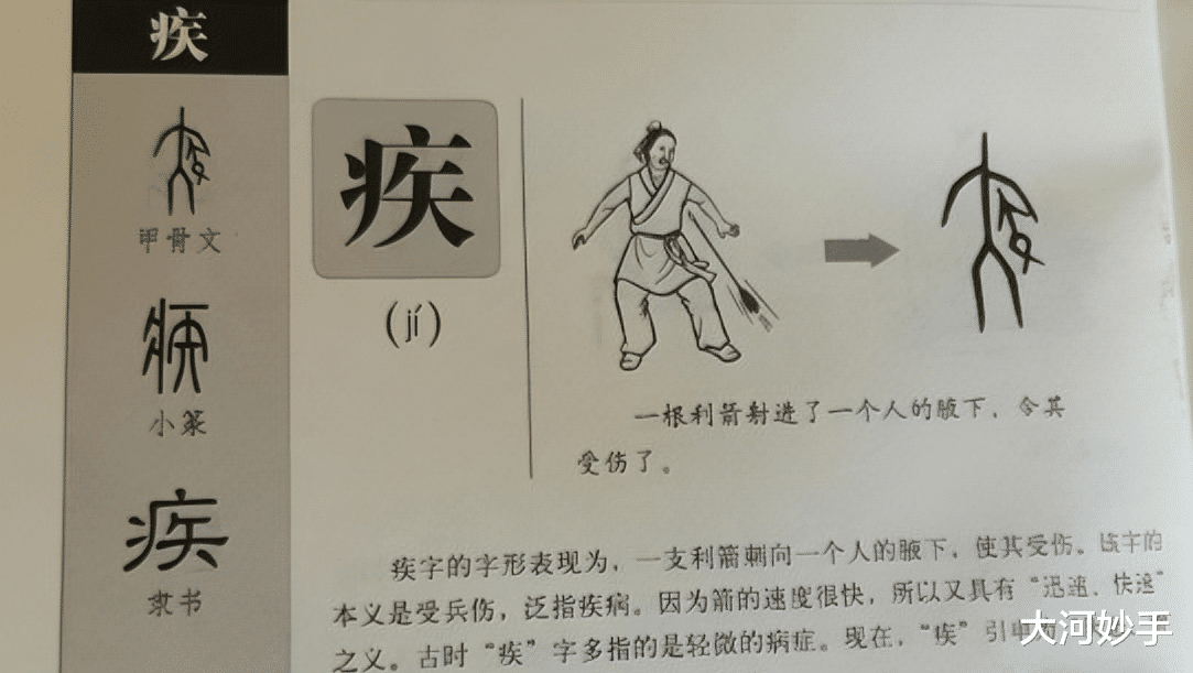 三、 疾病本质疾声旁 “矢”(shǐ,即刺、箭),好比这个人,被植物的刺所伤害,在后来发展成箭伤,比喻发病快、症状浅的小病。