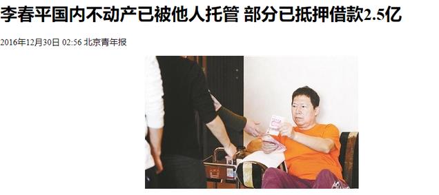 北京青年报——李春平国内不动产已被他人托管 部分已抵押借款2.5亿