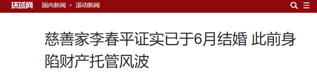 环球网——慈善家李春平证实已于6月结婚 此前身陷财产托管风波