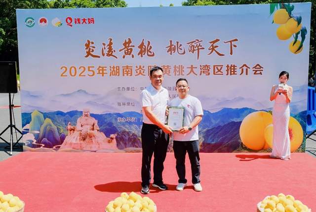 活动现场,炎陵县农业农村局局长吴集会向钱大妈颁发 《国家地理标志产品授权证书》,强化品质承诺——未来消费者在钱大妈购买的每一颗黄桃,均为经严格认证的“炎陵原产地正品”。