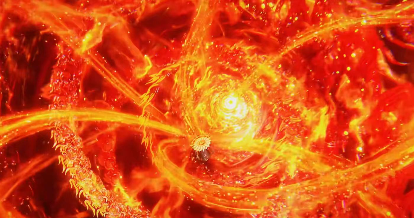 注意看还能发现,在萧炎的背后,有着一个金色的华丽的装饰品。在萧炎出关的时候,还有着非常炫酷的特效,如火海蔓延,还一圈又一圈,萧炎就身处其中。这里也不得不说导演很有想象力,这特效也绝对下大力气做了,很多观众也都被震撼到了。萧炎这斗圣形象,也绝对可以说远超预期,国漫界论形象还真的没有几个人可以和萧炎的斗圣形象媲美。