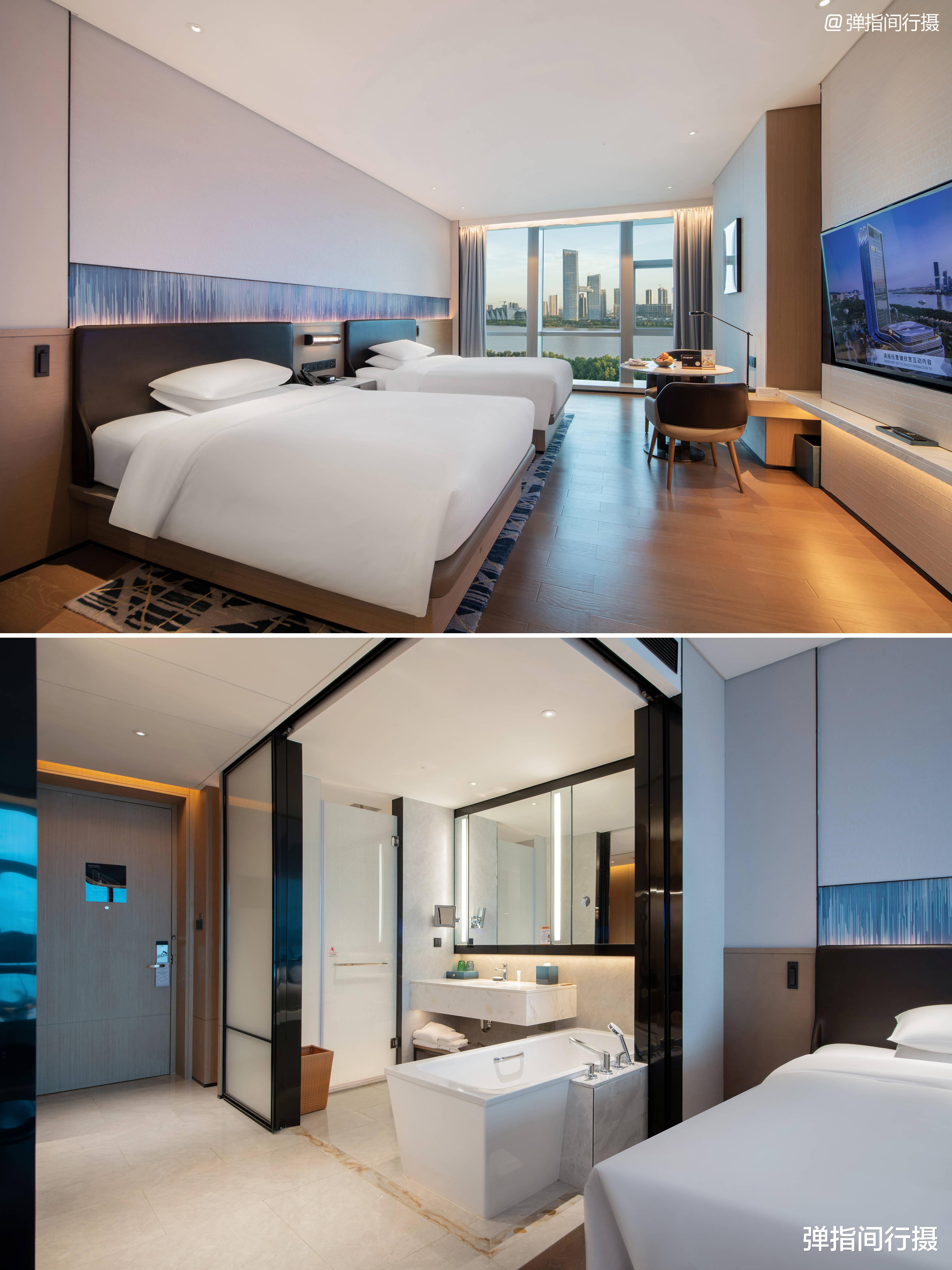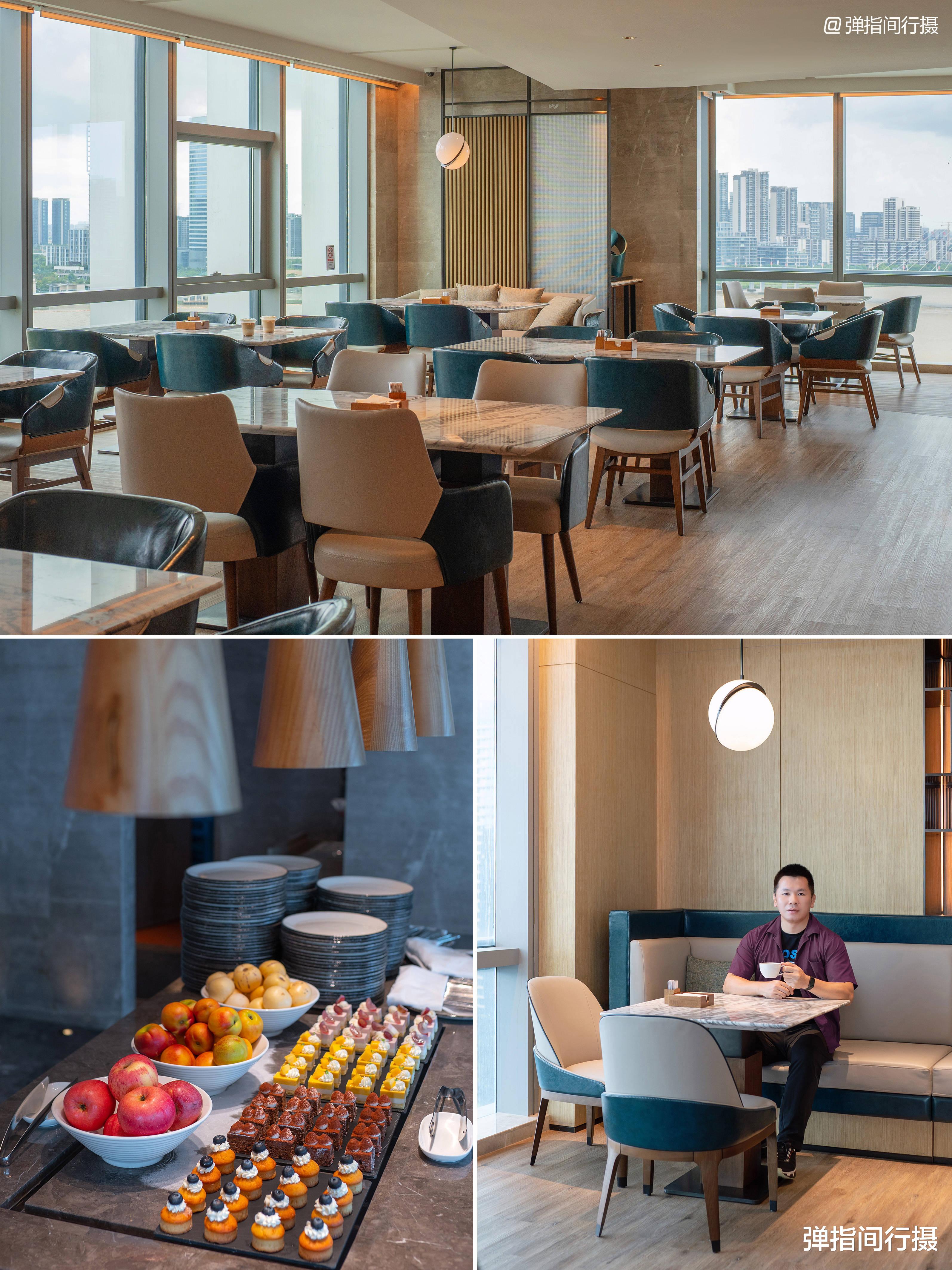 酒店客房格调现代雅致,时尚精致的设计融入中式韵味。最令人惊喜的是整面墙的落地玻璃,将蕉门河风光完整呈现。我入住的高层客房视野极佳,清早可见晨跑者在河滨绿道锻炼,傍晚能欣赏城市天际线的日暮美景。