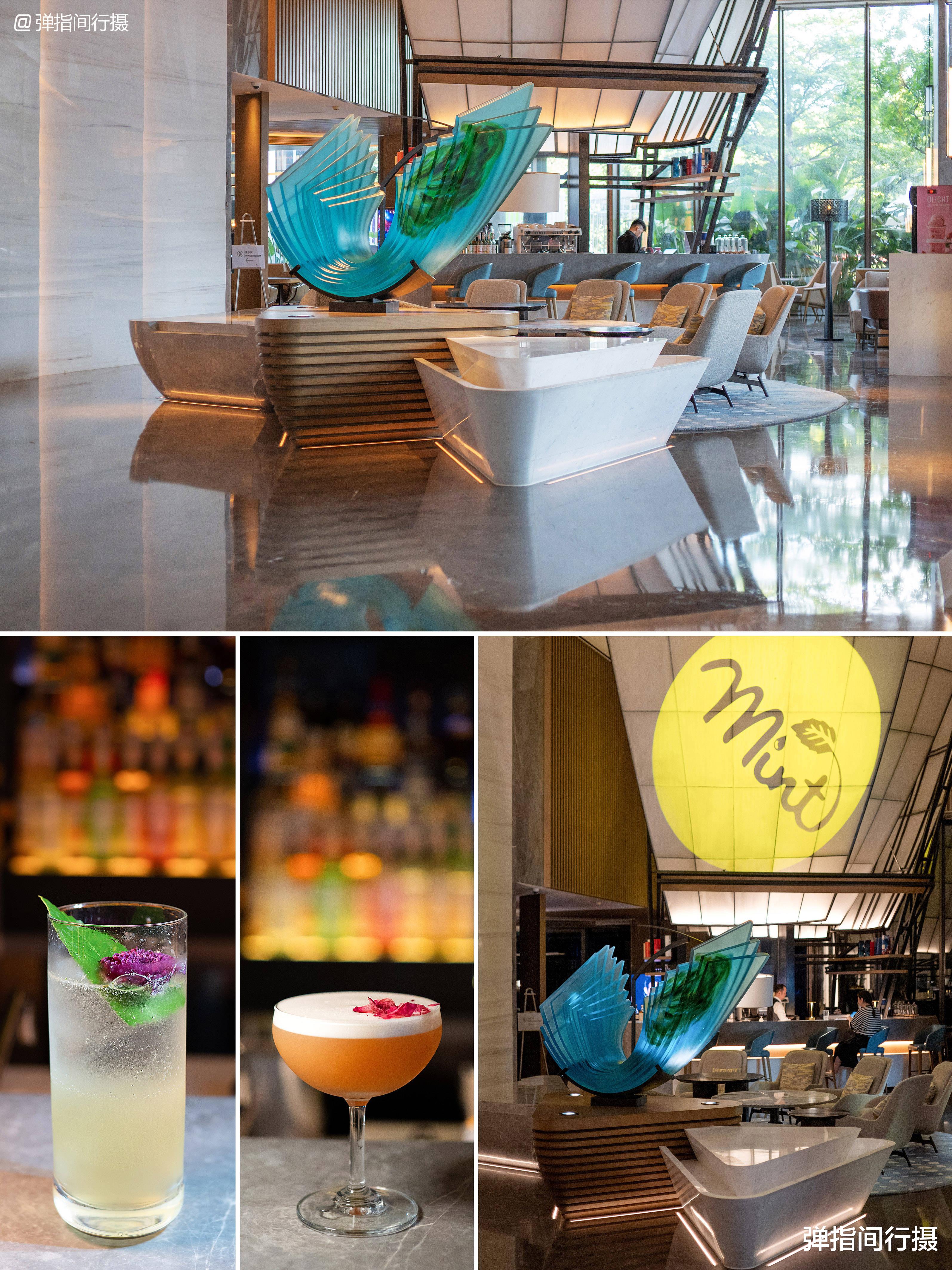 酒店大堂设有开放式大堂吧,下午时段,可在此品尝精致下午茶。入夜后,灯光调暗,专业调酒师开始调制创意鸡尾酒,背景音乐转为舒缓爵士乐,白天品茶的空间摇身变成时尚酒廊。