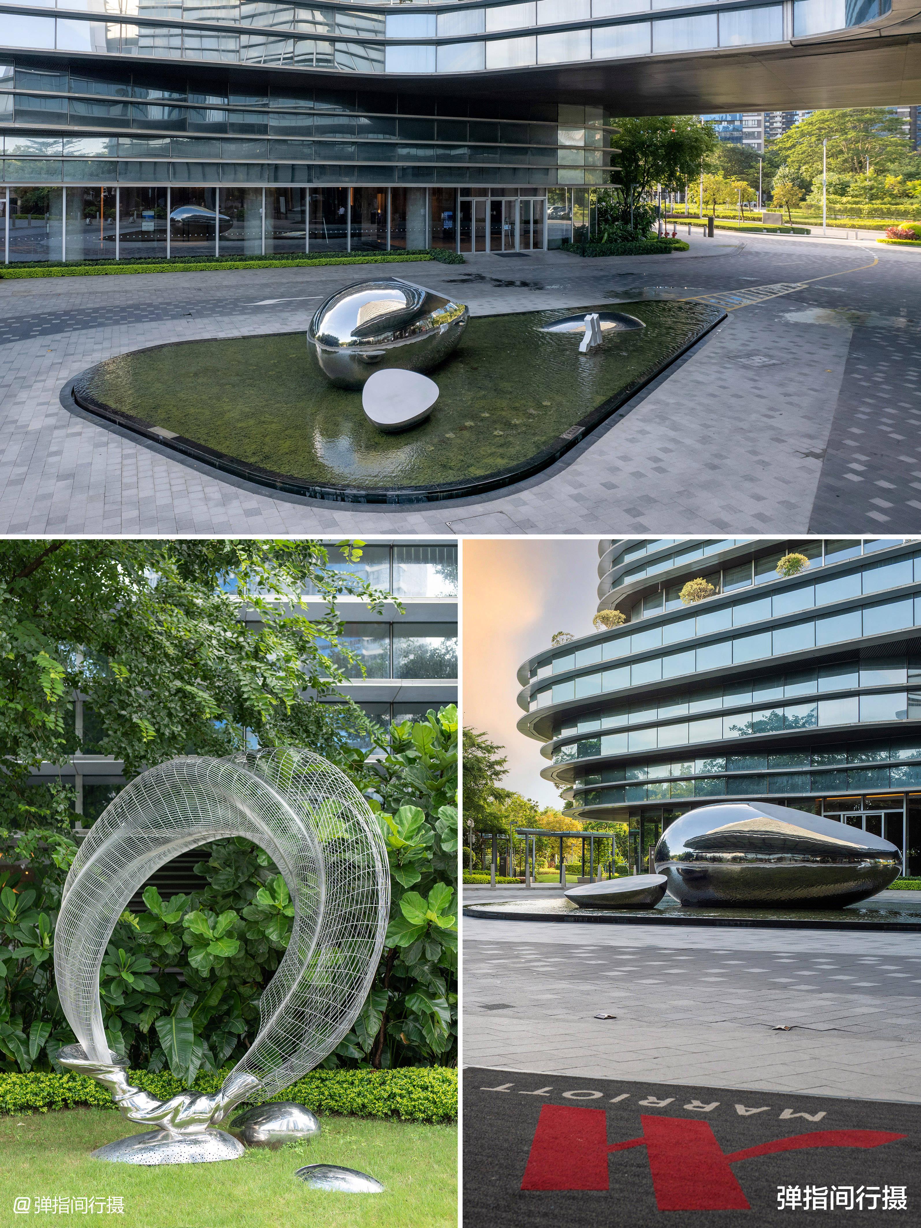 酒店主体建筑由146米高层塔楼和5层裙楼组成,通过30米钢结构连接桥实现功能整合,塔楼外立面采用水波状流动线条设计,与周边水域形成视觉呼应。步入内部,空间设计巧妙融合在地文化与现代美学,大堂挑高设计营造出开阔感,随处可见的水纹和风帆元素,凸显南沙的海洋渔家文化,整体氛围既国际化又不失本地韵味。