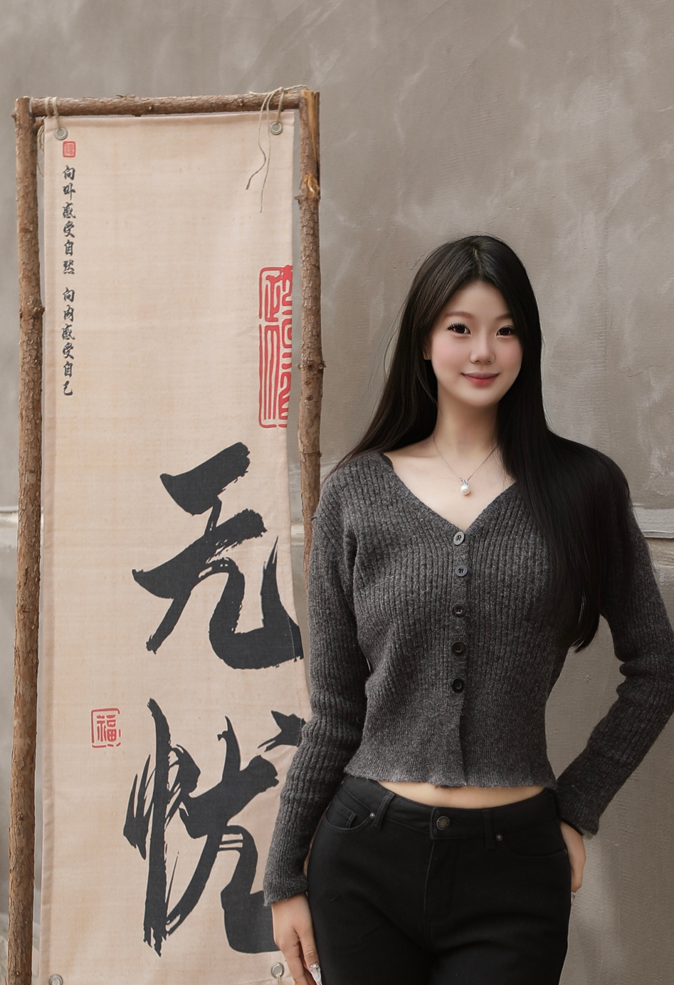 没有过多的去弄头发黑长直更能体现东方女子之美!