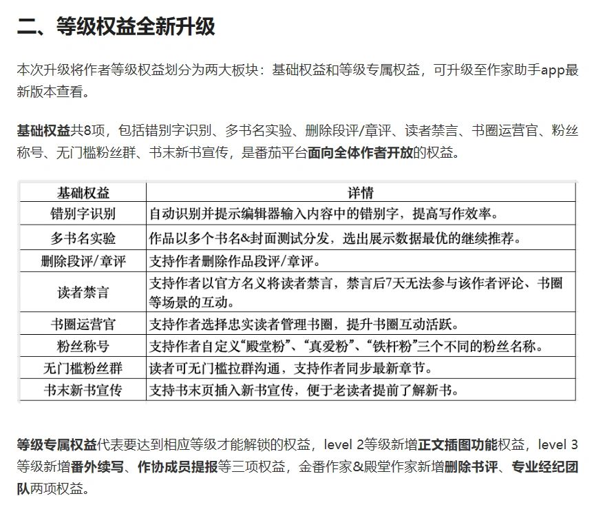 经专业评审团队一致认定,共计2位作家荣升番茄小说2023年度殿堂作家、18位作家荣升番茄小说2023年度金番作家。 恭祝以下20位作家晋级成功,希望广大番茄作者持续进取、勇攀巅峰! *补充说明:以下作家的排名不分先后,仅按照笔名首字母顺序排列。 ♠ 写作等级权益全新升级!