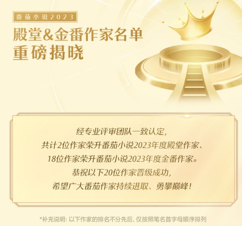 番茄🍅殿堂&金番作家名单揭晓!♛