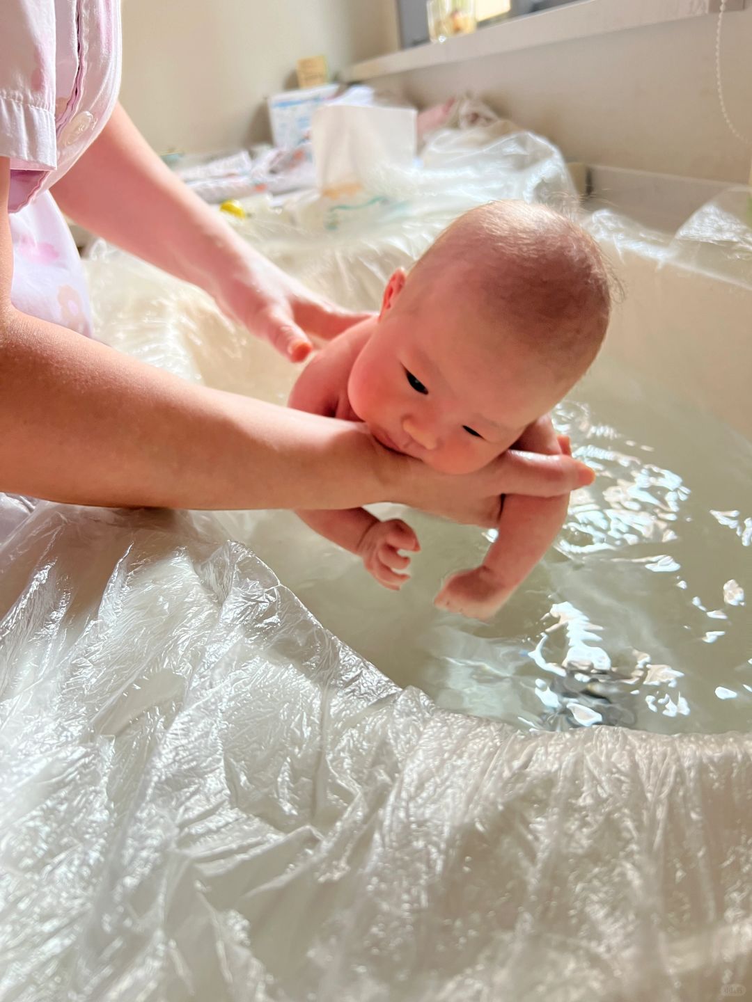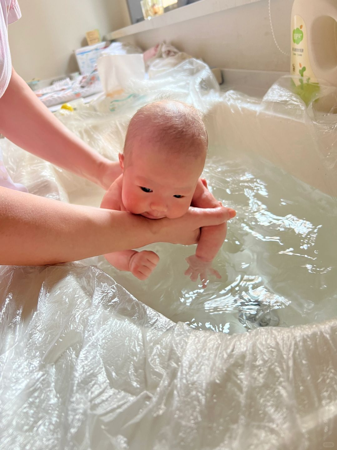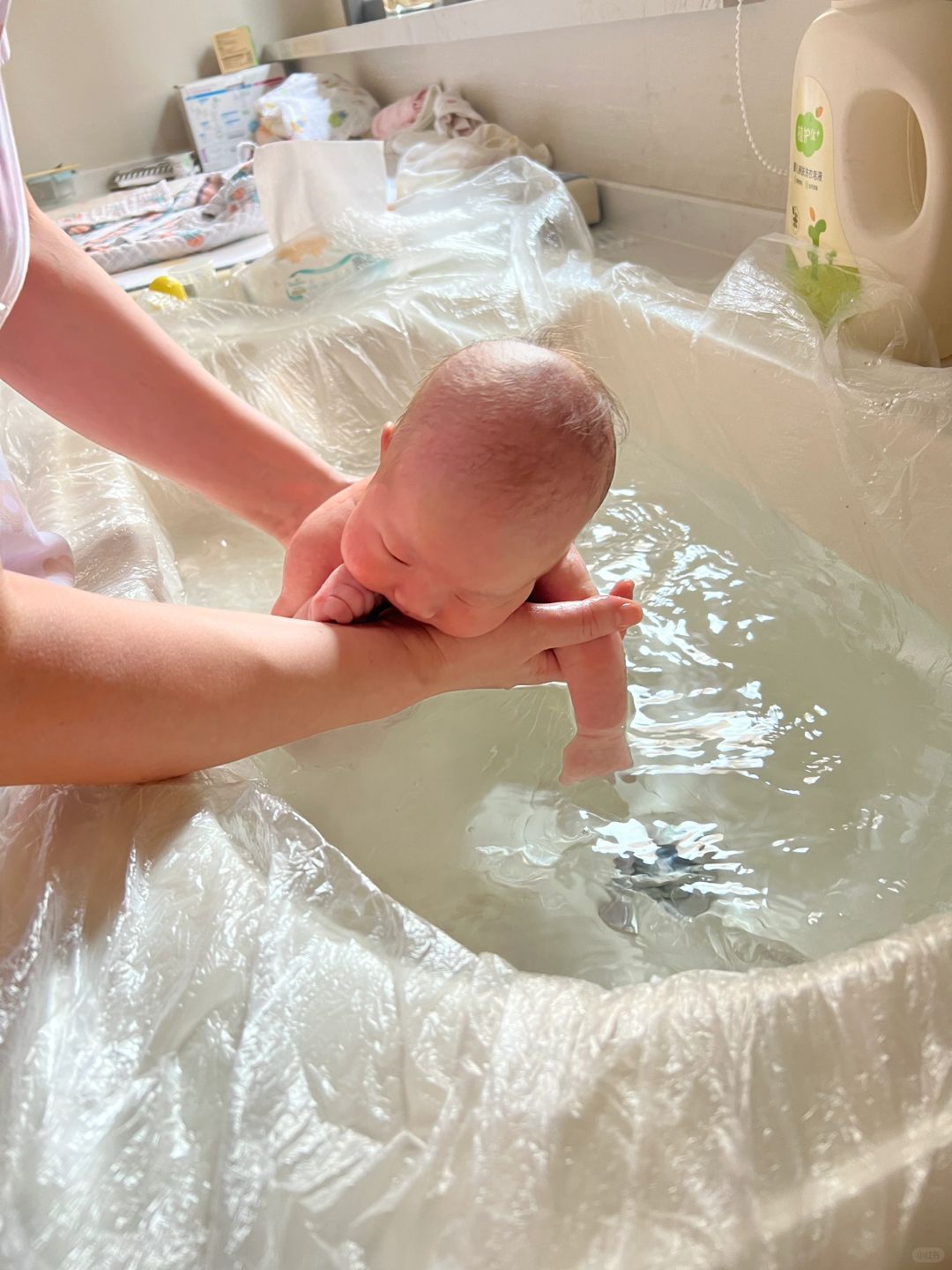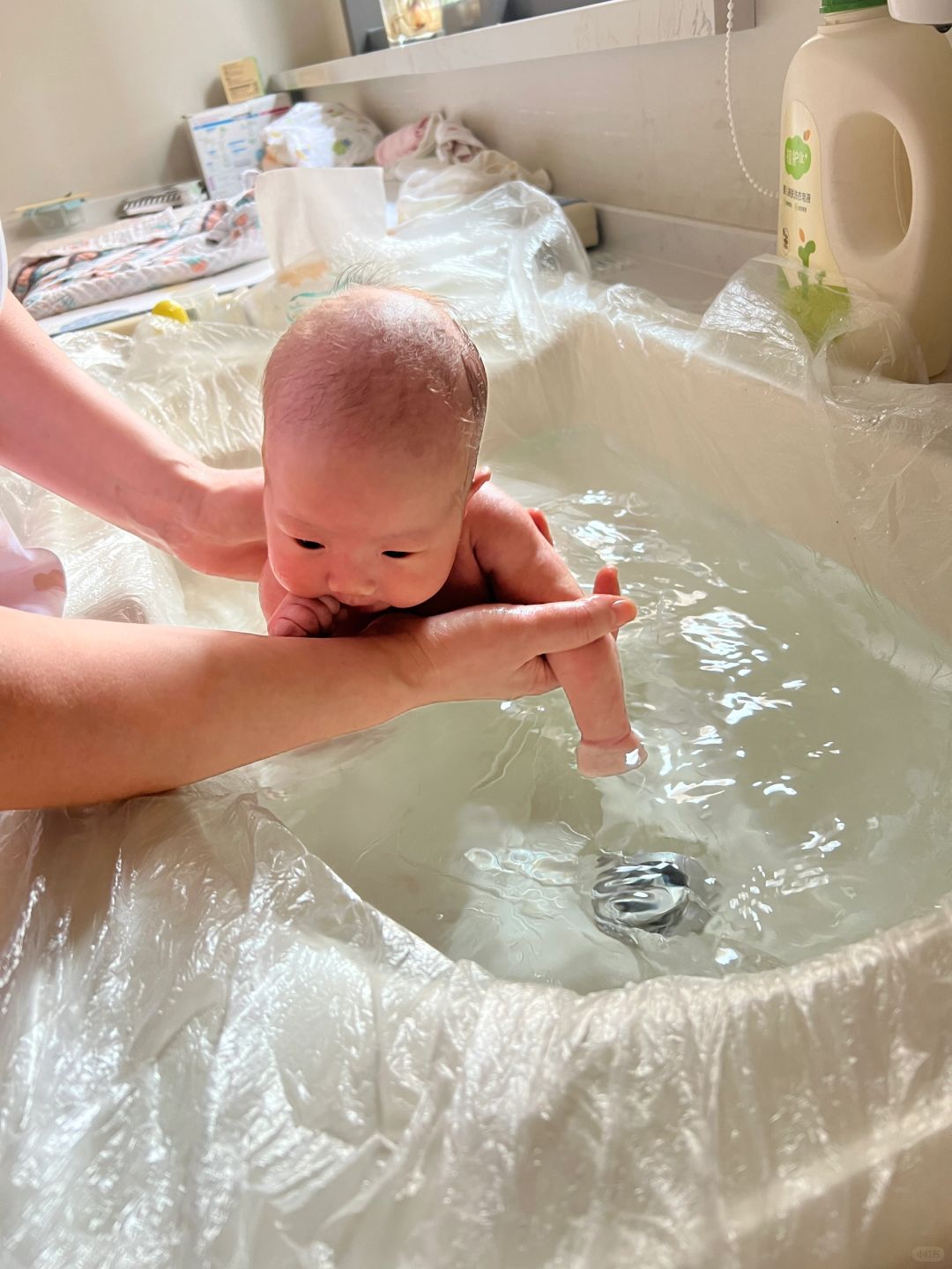 月嫂每天用清水给宝洗澡,洗澡做抚触。