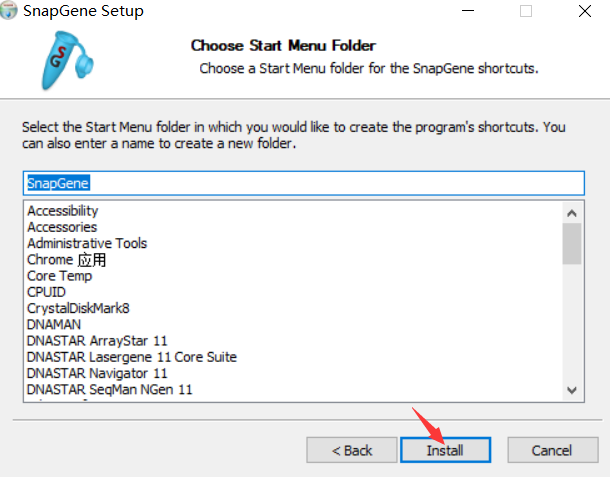 2. 设置 SnapGene 软件的安装目录,推荐默认的C:\Program Files\SnapGene 即可,点击 Next