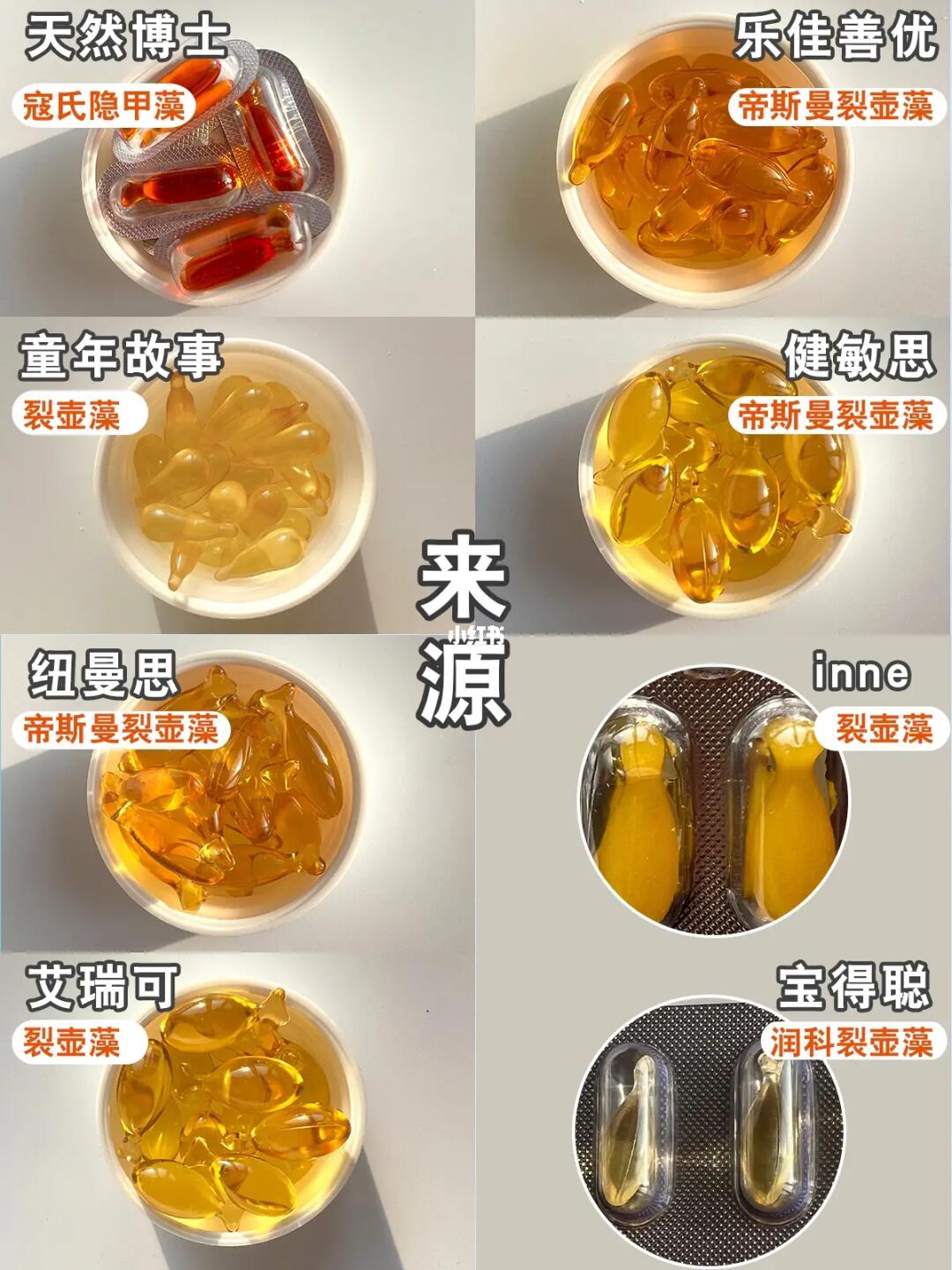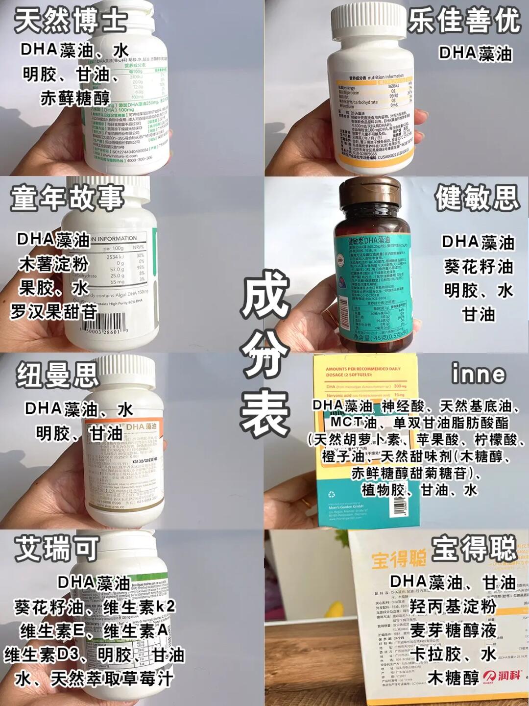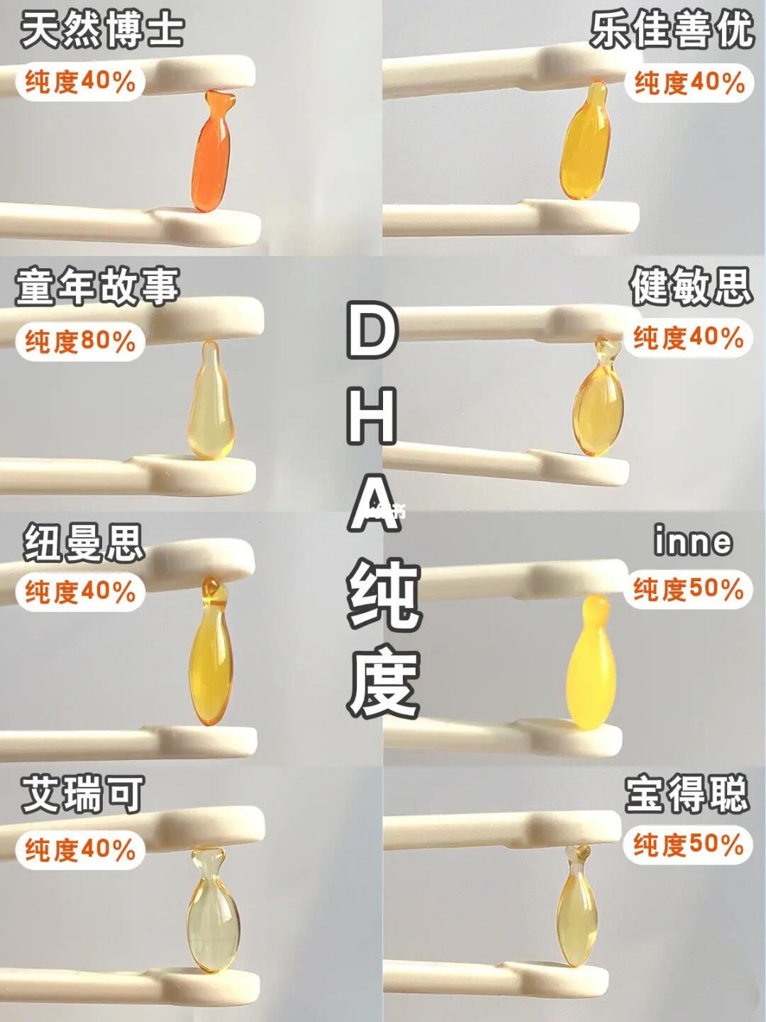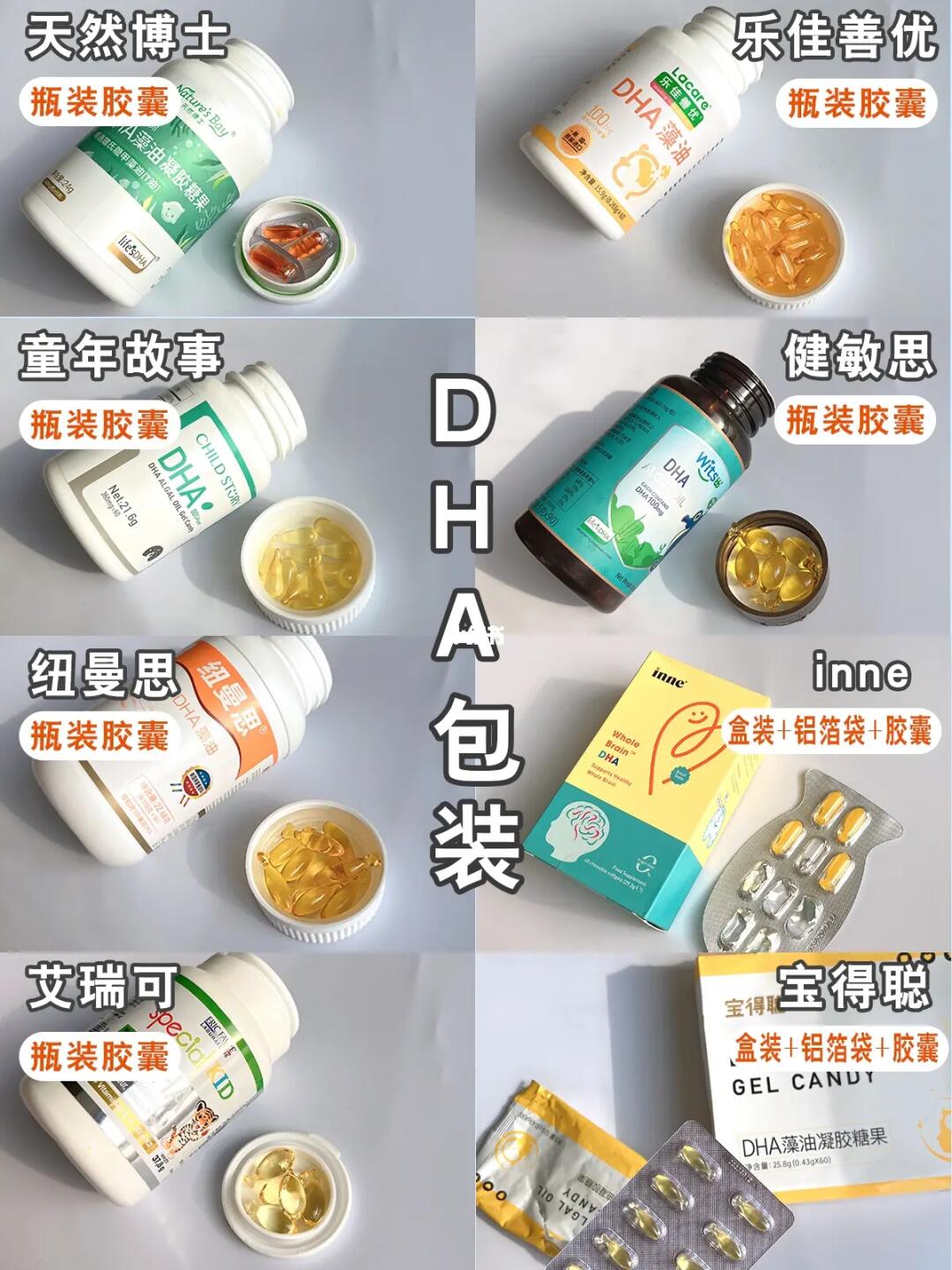 纽曼思、天然博士、乐佳善优、艾瑞可、健敏思DHA含量是100mg/粒,宝得聪是110mg/粒,inne和童年故事是150mg/粒,建议按照营养学会推荐选择100mg/粒标准含量的,剂量精准哦