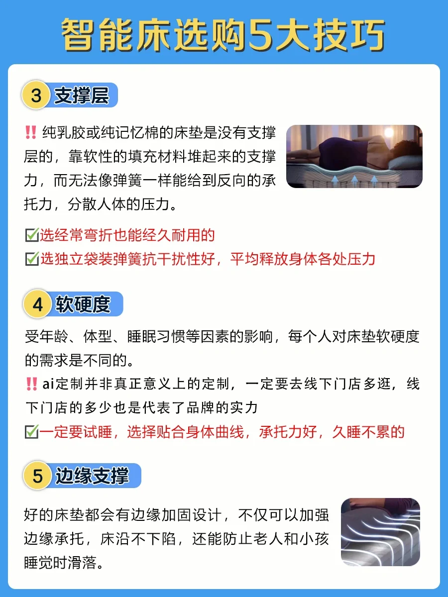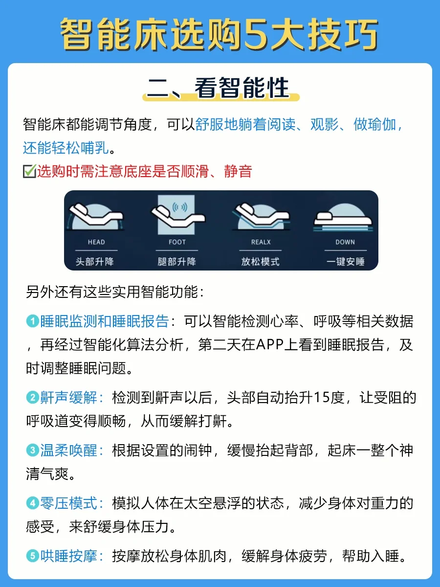 📝下面整理了选购智能床5大技巧,快来抄笔记吧: