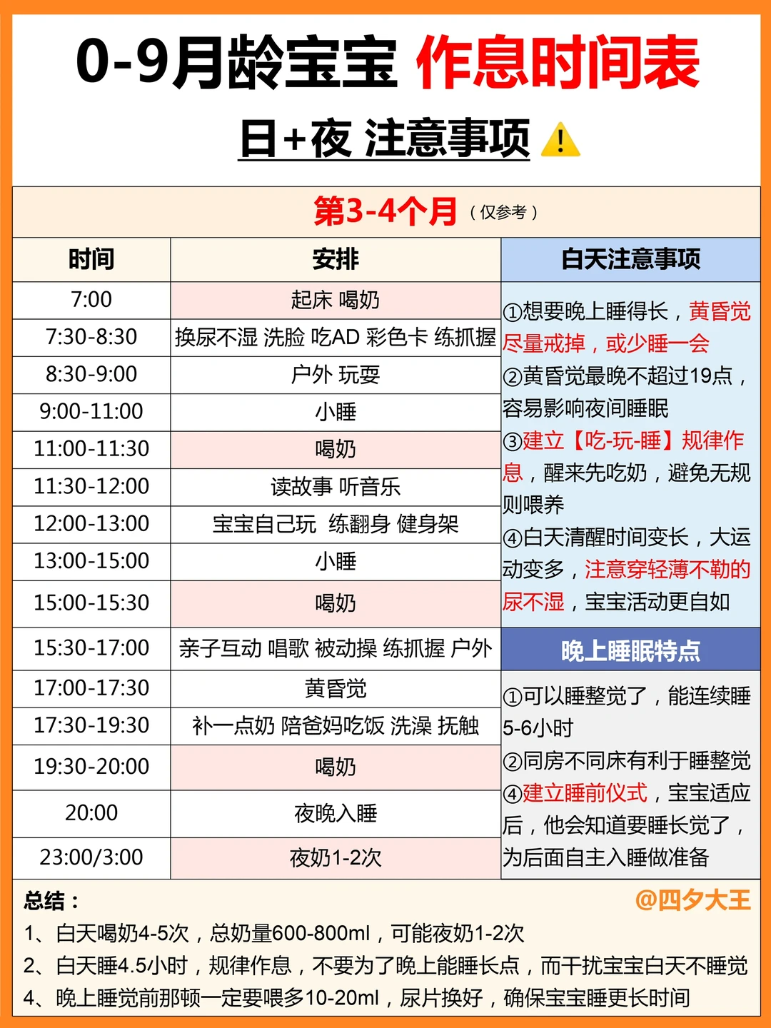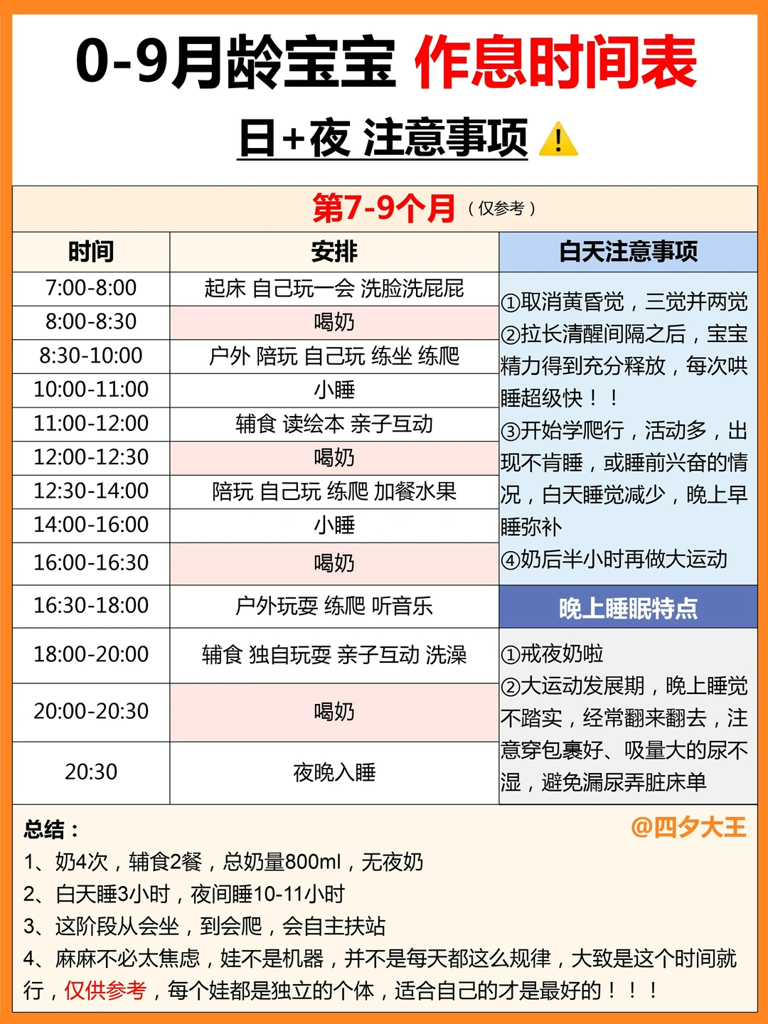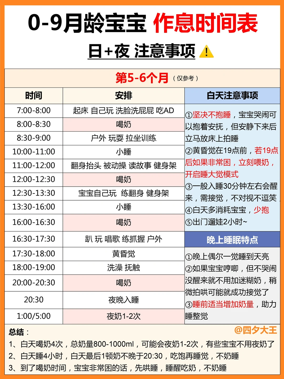 注意:仅供参考✅哦!每个宝宝都是一个独立的个体,不可能完全相同,以上时间为大致参考,妈妈还需根据宝宝实际情况来培养规律作息!