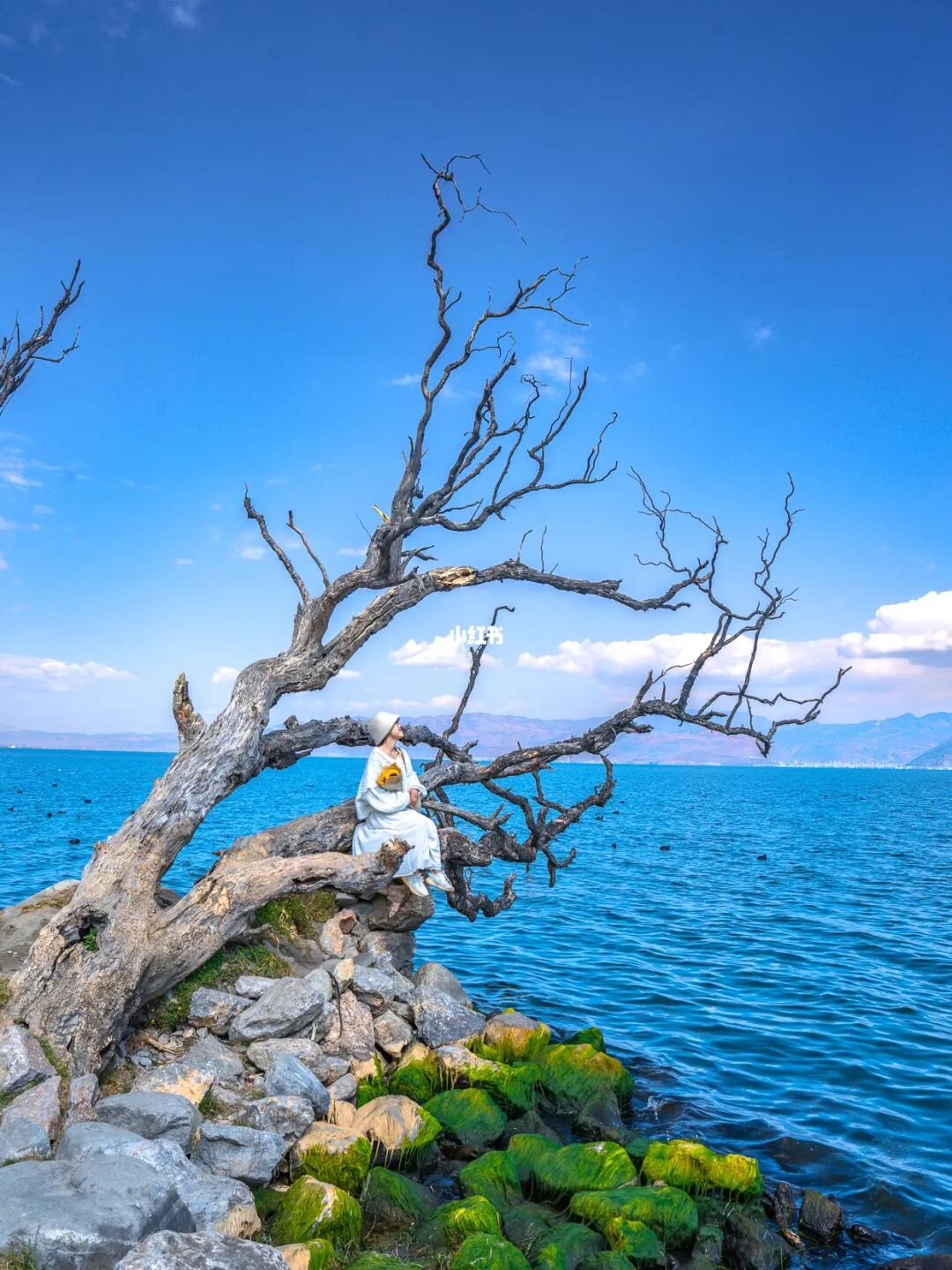 在磻溪S湾附近,有一棵延伸到洱海的枯树
