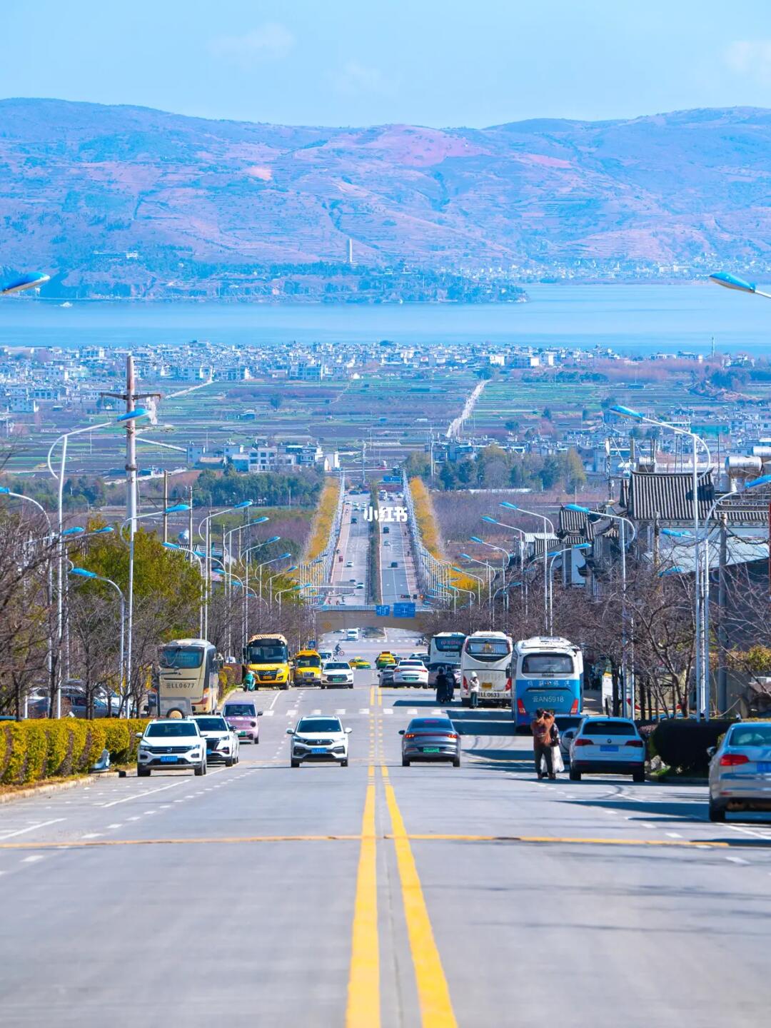 一条连接苍山和洱海的道路,站在高处拍照很壮观,要注意来往车辆,安全拍摄