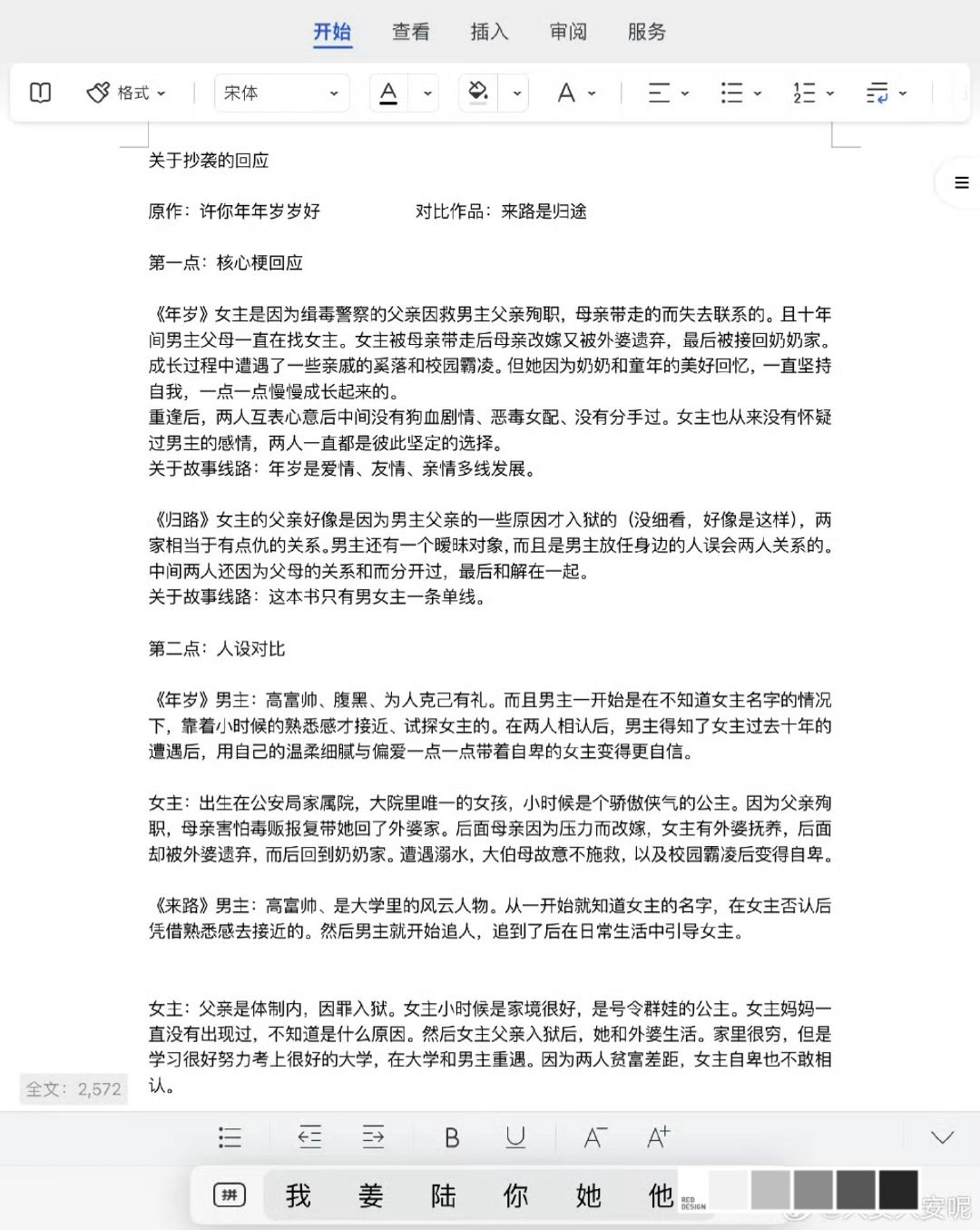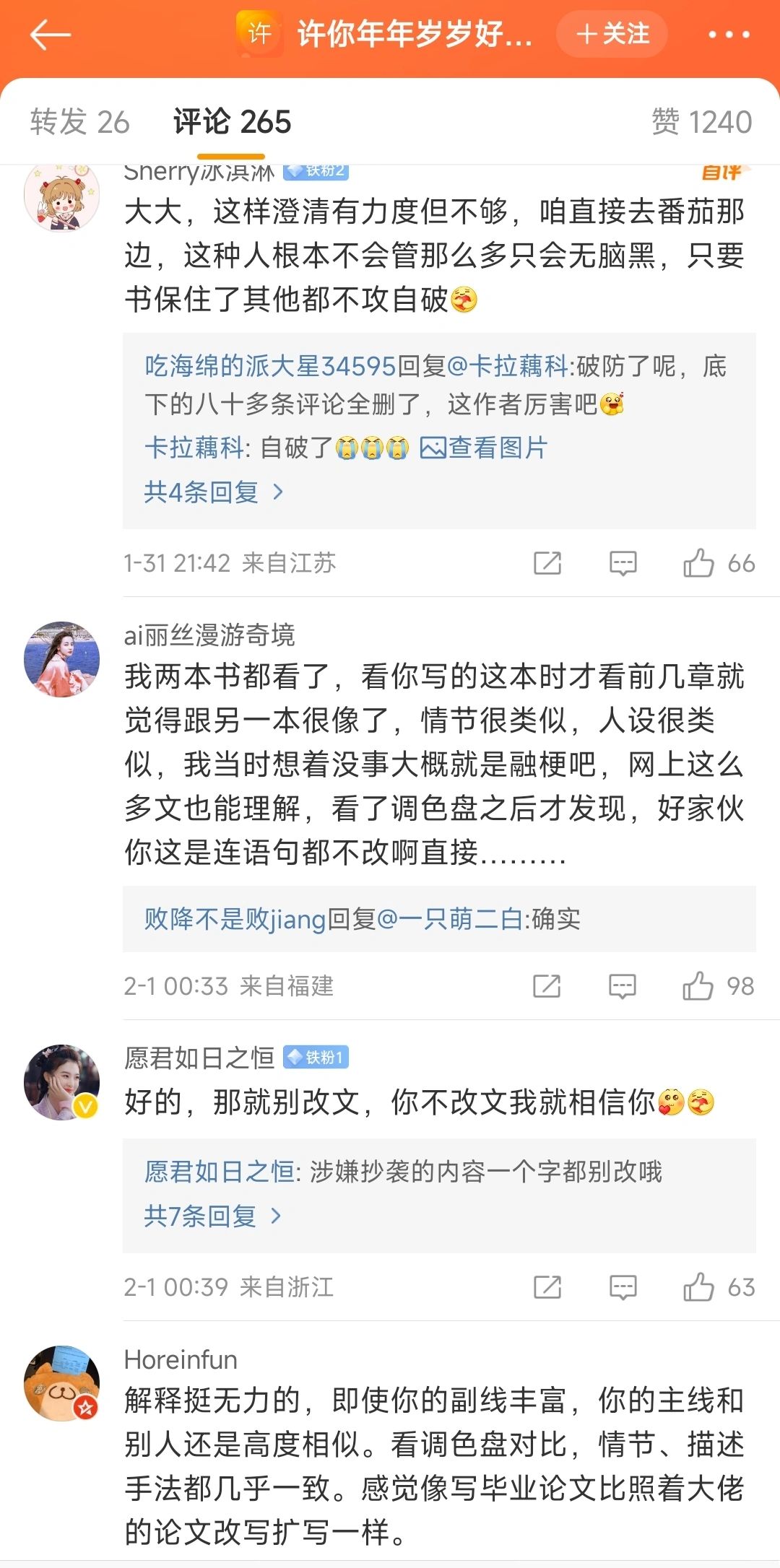 云深不知处????? 5 2024-07-03 18:34 一看到抄袭,就想起去年我举报的另一本小说,手脚那叫一个快,趁着连载没人反应,连夜锁起来两三天全半部分都改了,现在这本小说还在。某些作者心虚的不行,还给番茄多了包庇的名头,真够无语