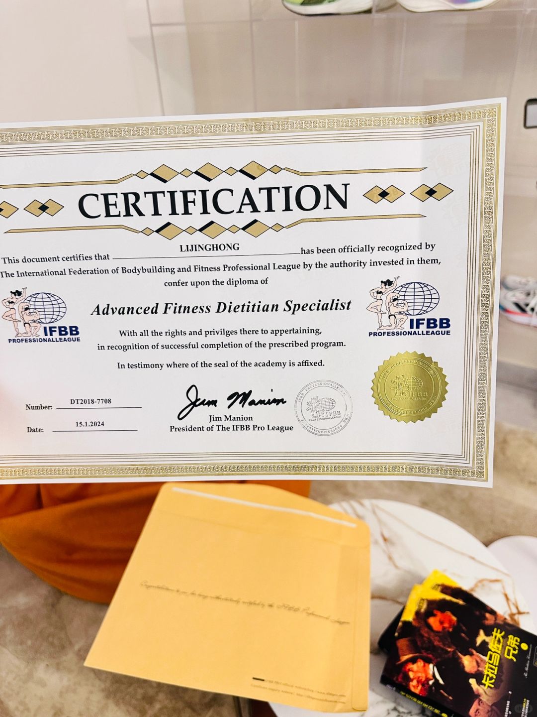 前前后后复习了7个多月的时间,年底利用假期参加考试并通过,终于在几天前拿到了IFBB职业国际进阶运动营养师的认证证书