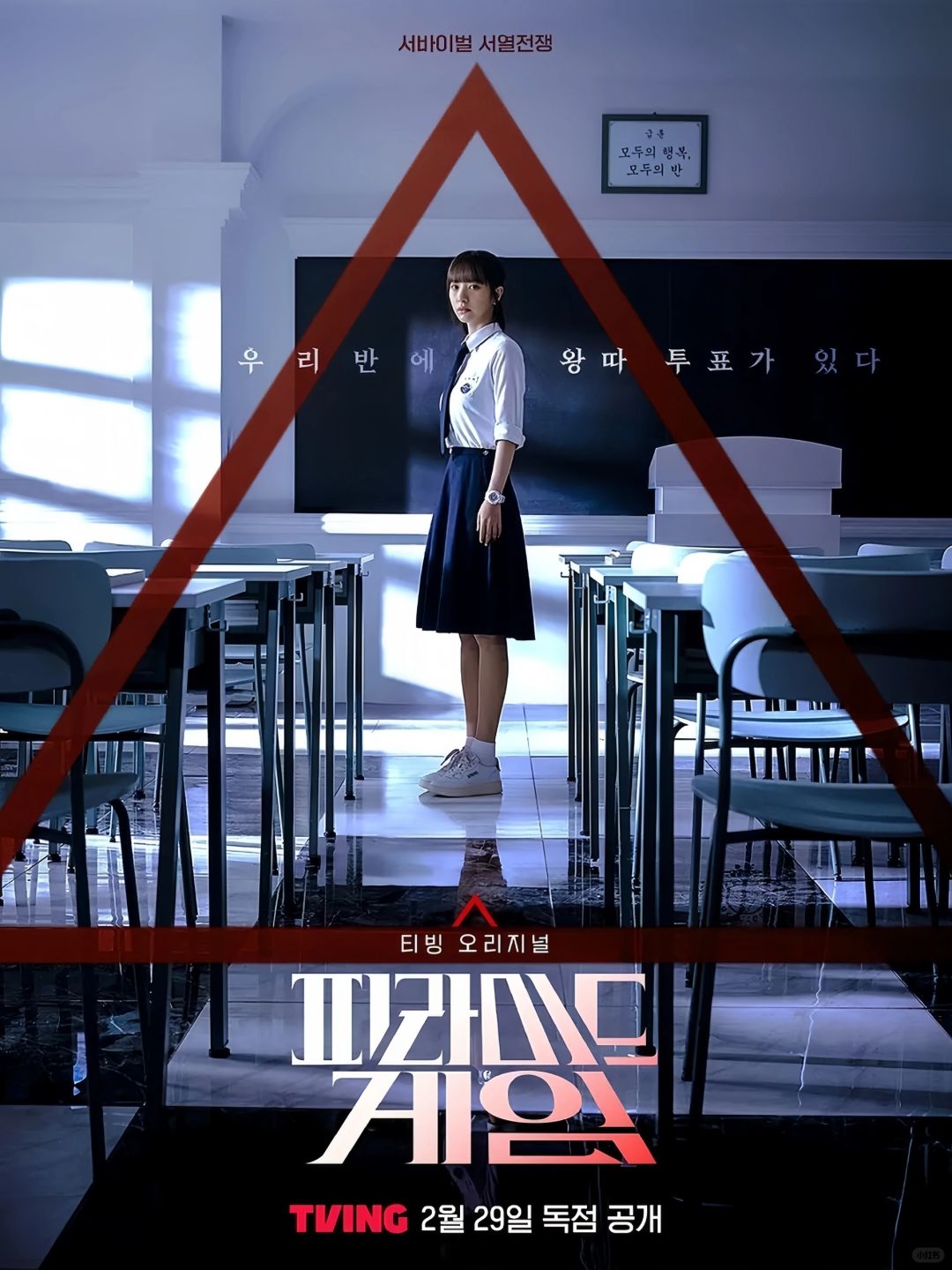 📺剧名:金字塔游戏(2024.02.29上映) ✨类型:悬疑 🕰️时长:共10集 🌈主演:金知妍、张多雅、柳多彬、姜娜延、丁夏潭、申涩琪、河律莉等 ✅韩国真的太敢拍了,校园全女等级生存游戏题材,张多雅、金知妍联合主演!又是一部漫改,三女主斗智斗勇,悬疑直接拉满! ✅看似平静的5班教室里,残酷的分级游戏如期上演。F级转学生成秀智又将会如何反击? ✅张多雅饰演白夏琳,但实际上却有着截然相反的性格;金知妍饰演转学生成秀智,她是用投票选出被欺负者的这一幼稚游戏的目标,同时也是这个游戏的阻击手。