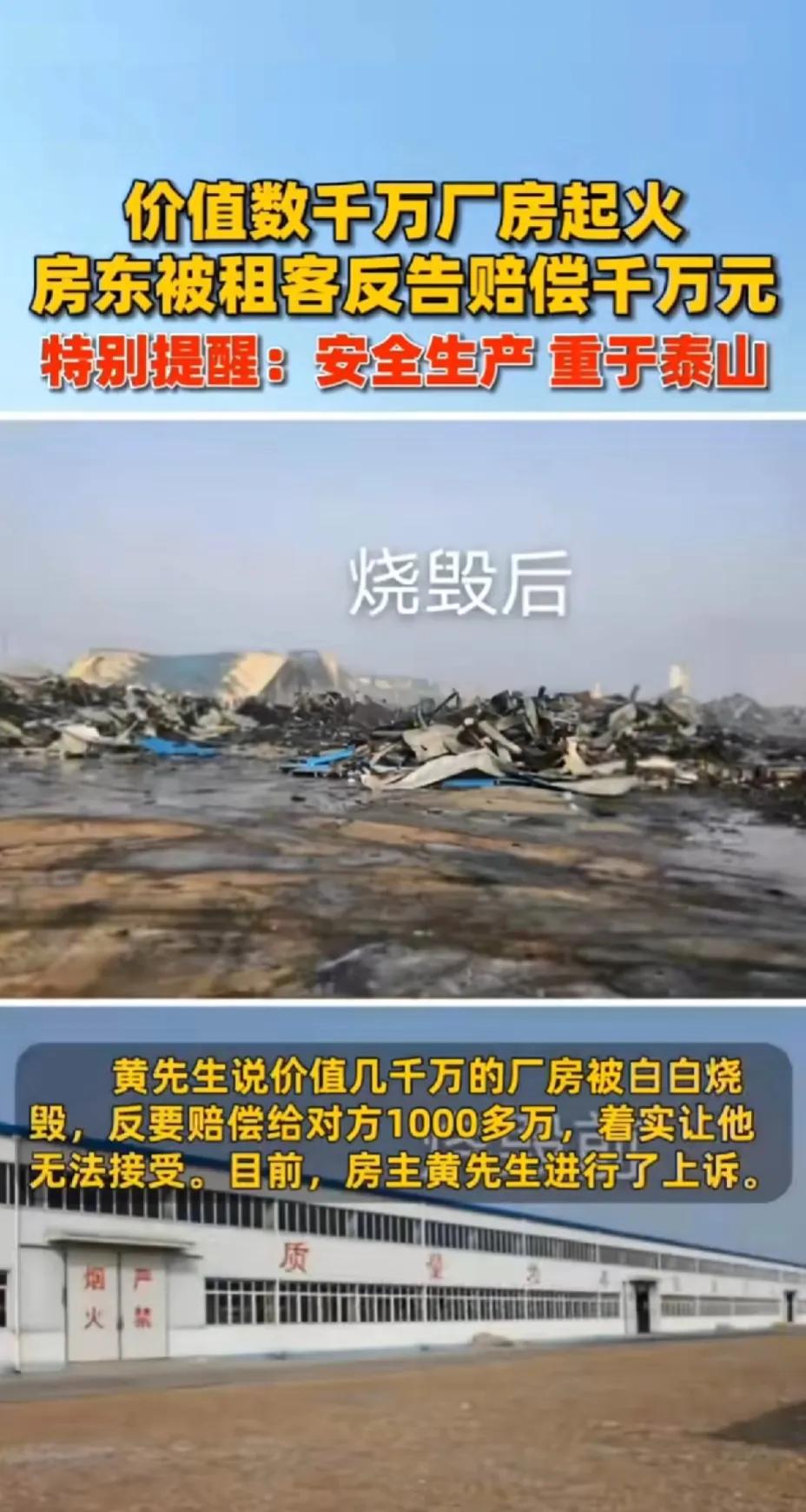 #数千万厂房被烧反赔租客千万#