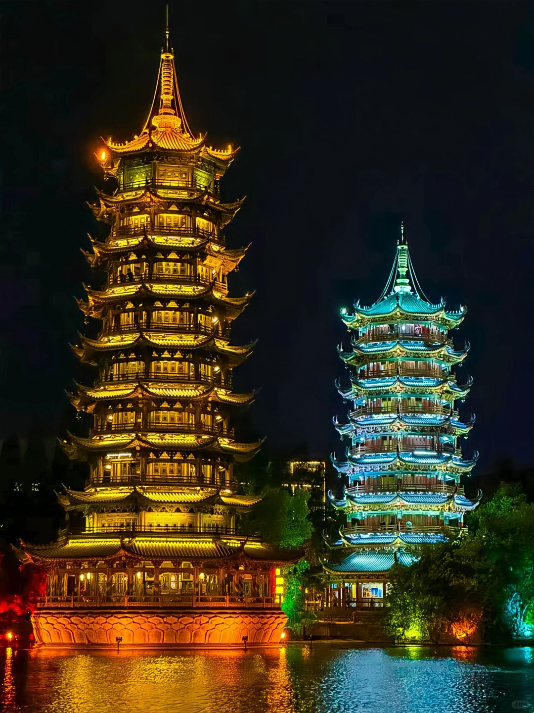 👉日月双塔:适合夜晚去玩,在公园里面散步,欣赏日月双塔