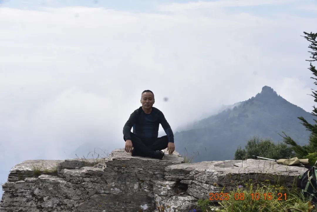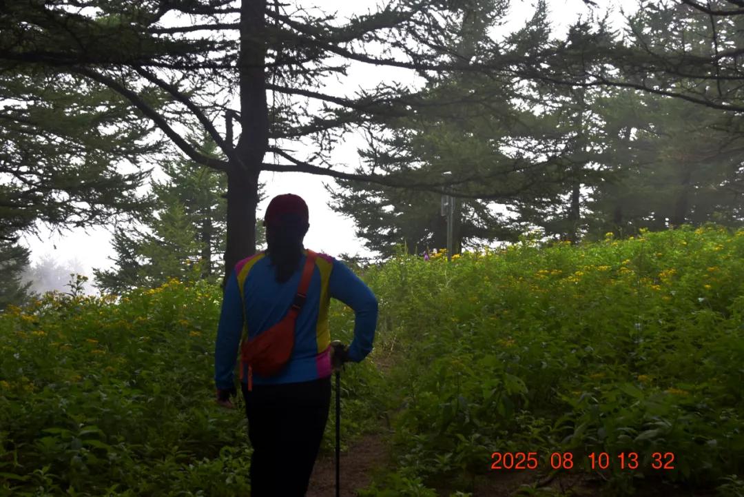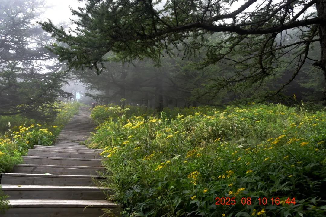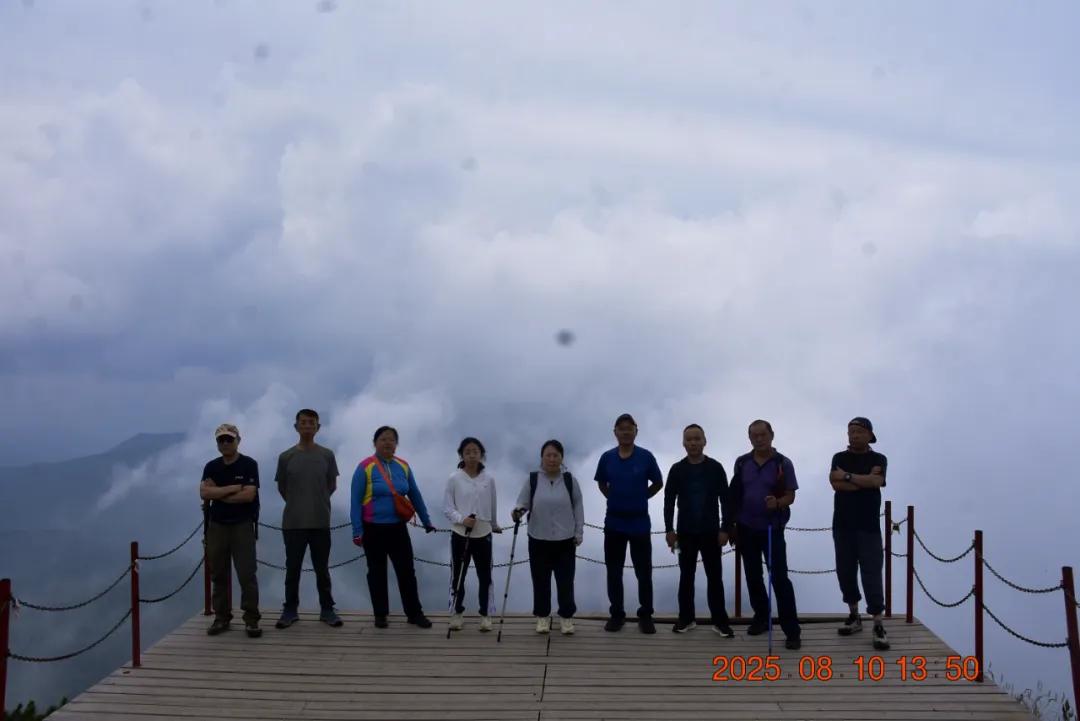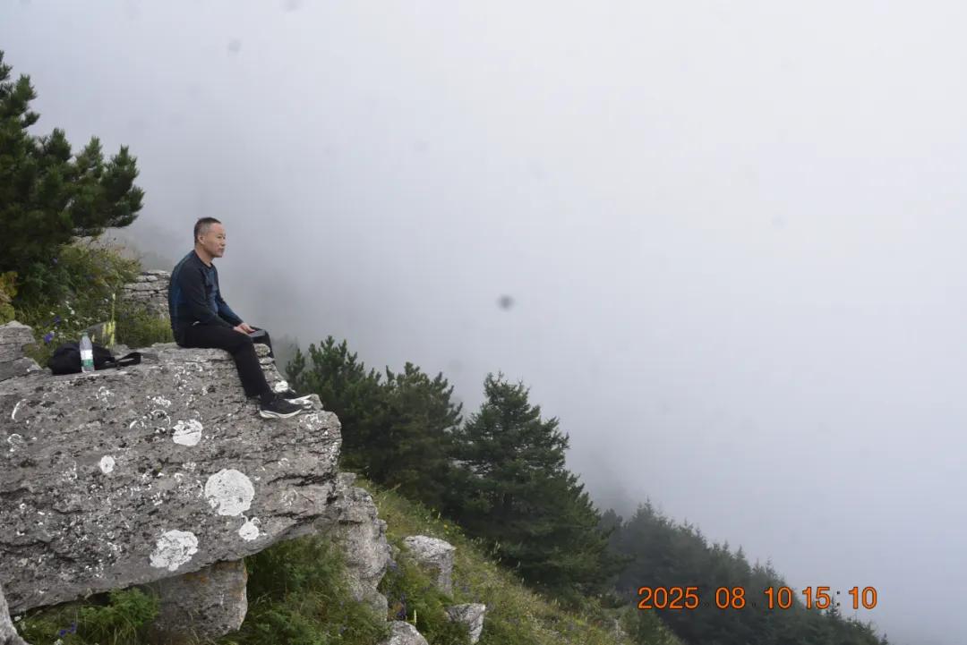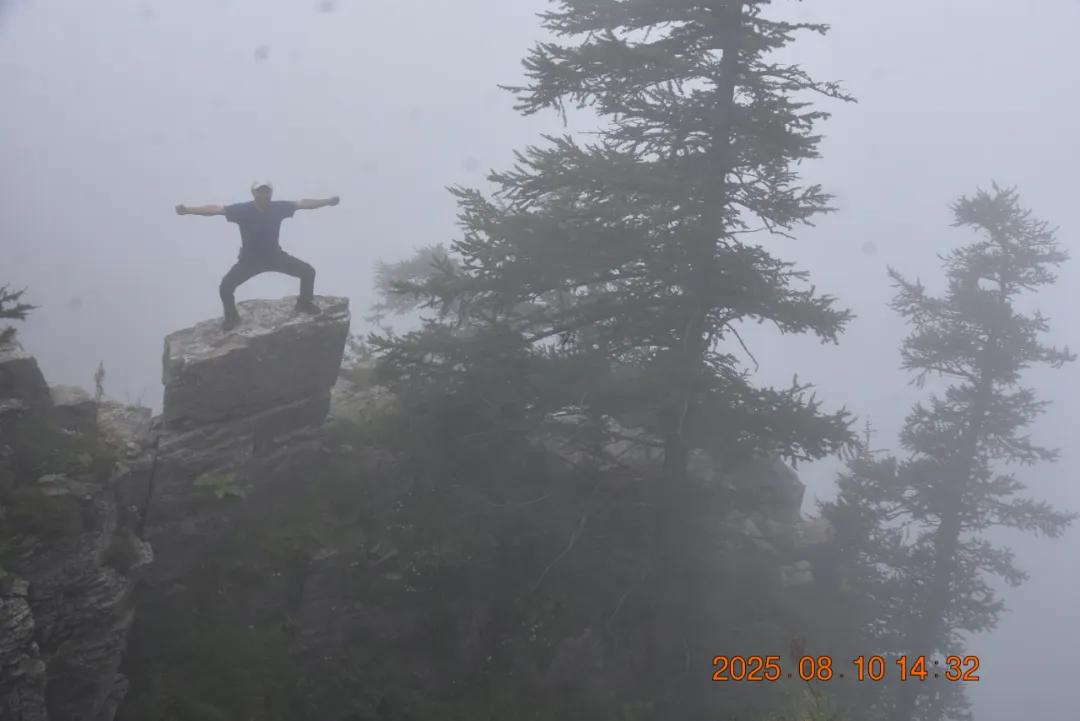 终于到了,大家打卡拍照,就是云雾太多,遮天蔽日的啥也看不到。
