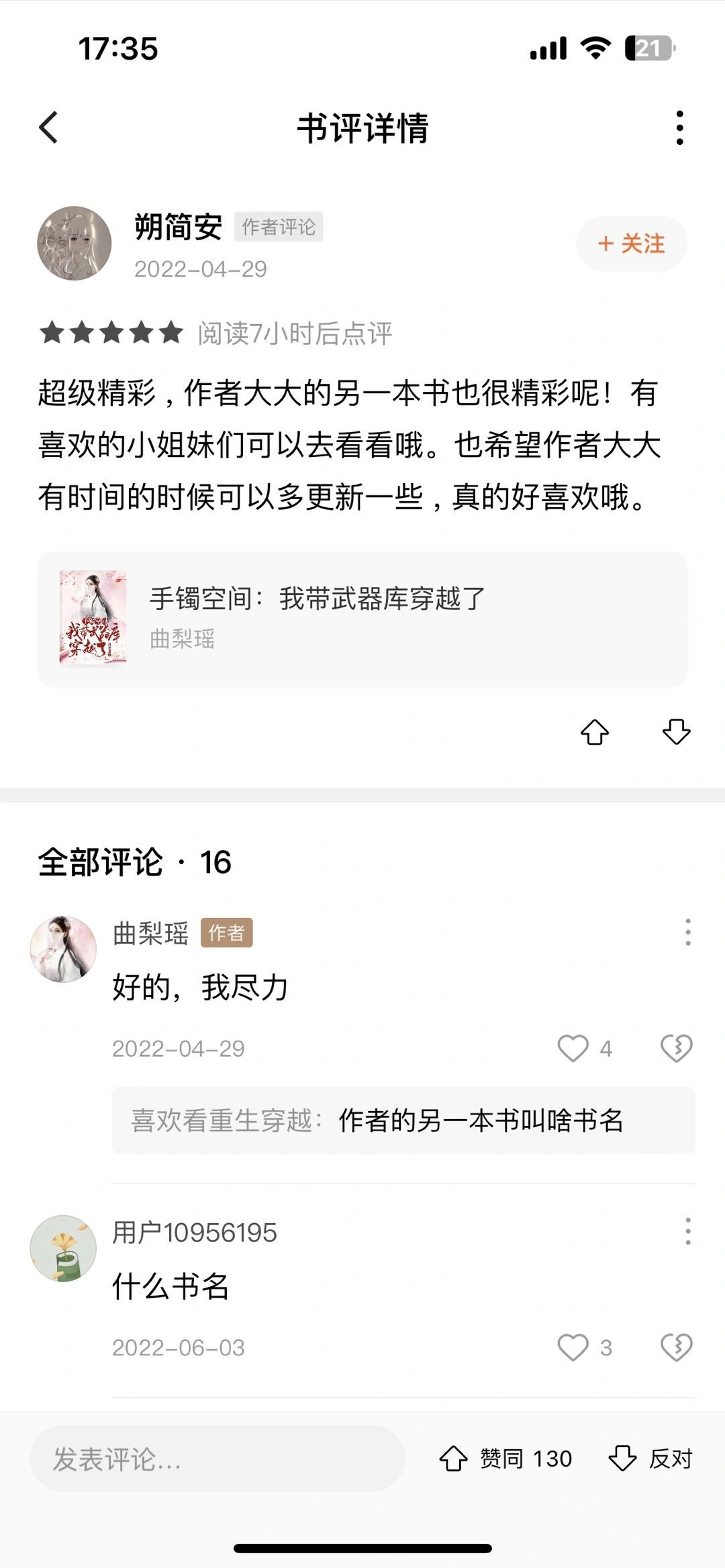 2020年怀孕的时候,我偶然间被番茄小说的某本书给吸引,整天沉浸在故事里无法自拔。由于我先天性心脏不好,孕晚期的时候比较担心,就在这本书的章节末尾评论,希望自己喜欢的作者能给我鼓励,没想到作者很快就回复了我的评论,并加了我的联系方式。在我进产房的那天,他在作者有话里还让读者们都给我加油打气。从产房平安出来的时候,作者甚至还给我发了个红包,当时特别感动。