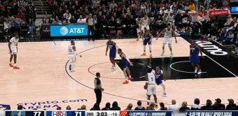NBA赛场镜头:这俩球我猜都会进今日十佳球! 快船这边乔治背后运球晃到了华子,然后突进内线,腾空闪躲,越过戈贝尔的封盖,用左手小拉杆上篮命中! 紧接着,戈贝尔内线接球;运一步,连续空着作业,顶开小卡,原地飞起隔扣小卡。小前锋的身体去防守中锋,确实不太够看的!身形差距太大!