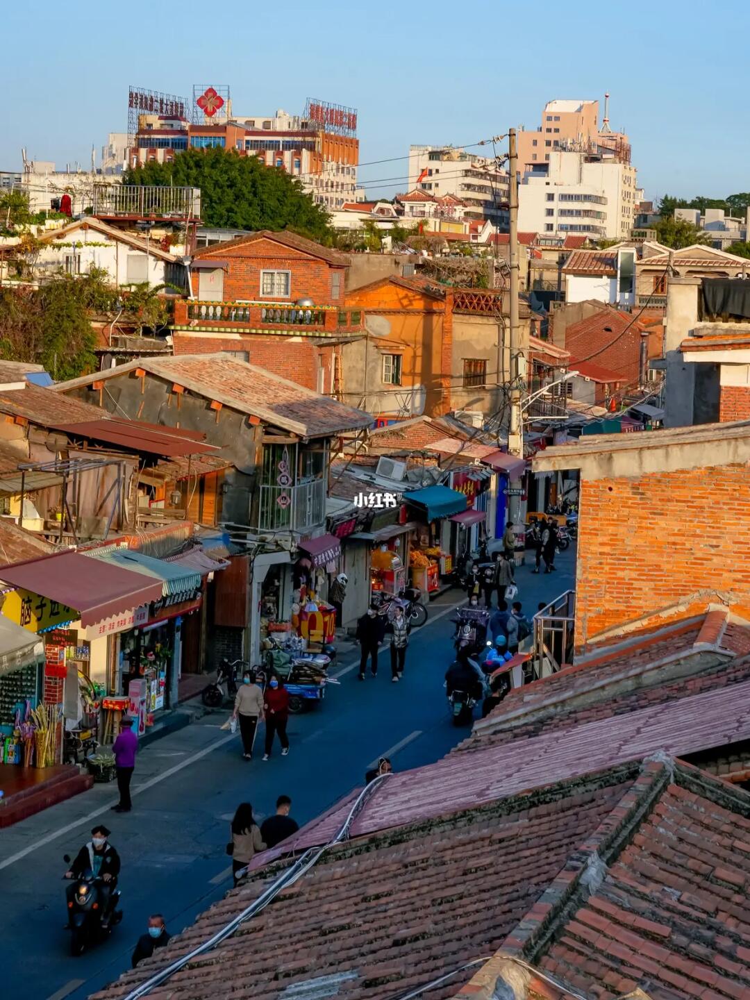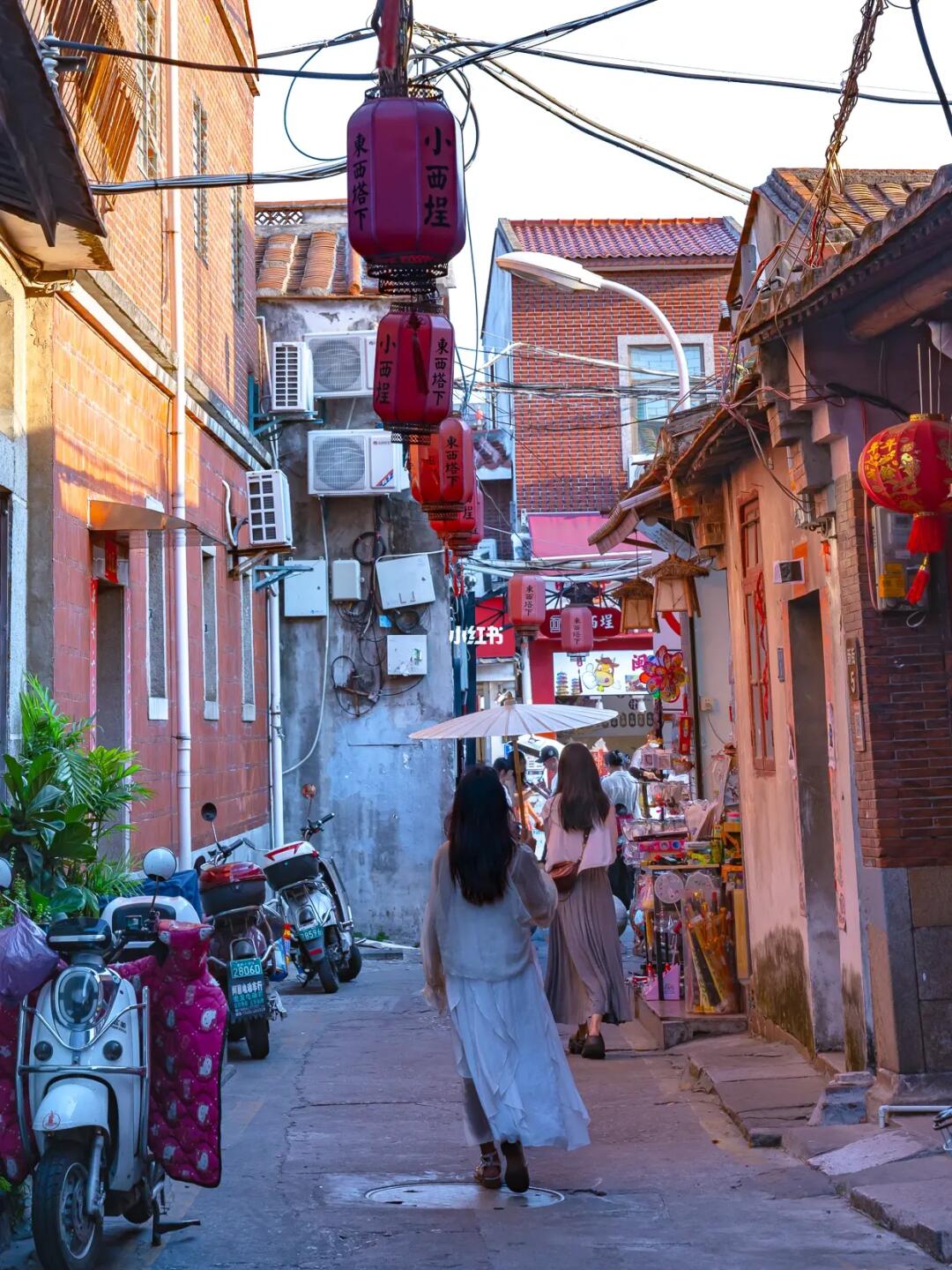 充满烟火气的老街,在巷子里面可以看到东西塔