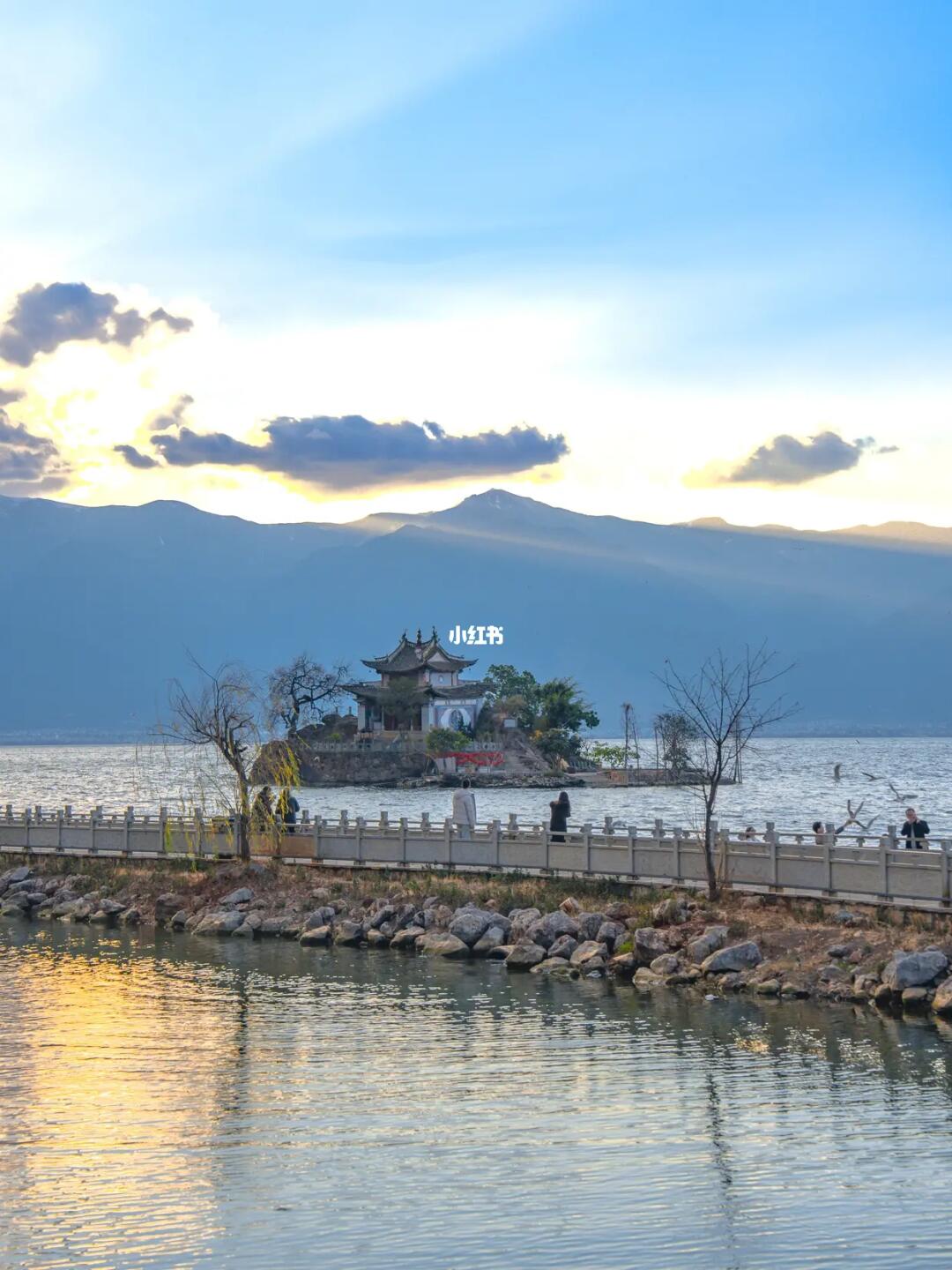 直通洱海的彩虹路,在夕阳下,治愈又浪漫
