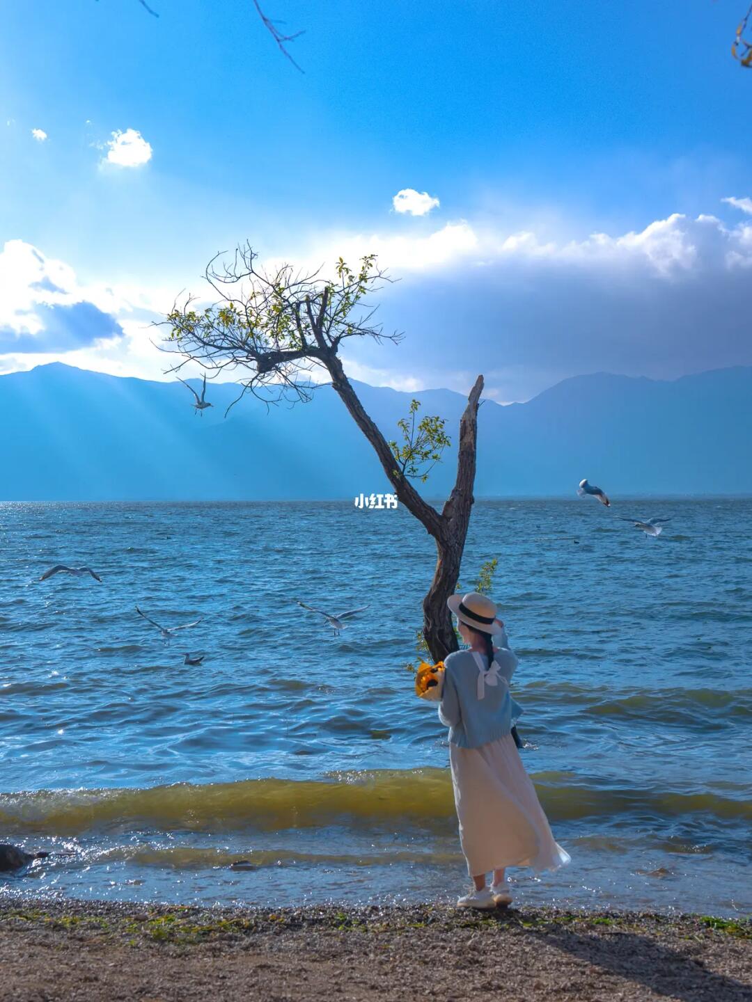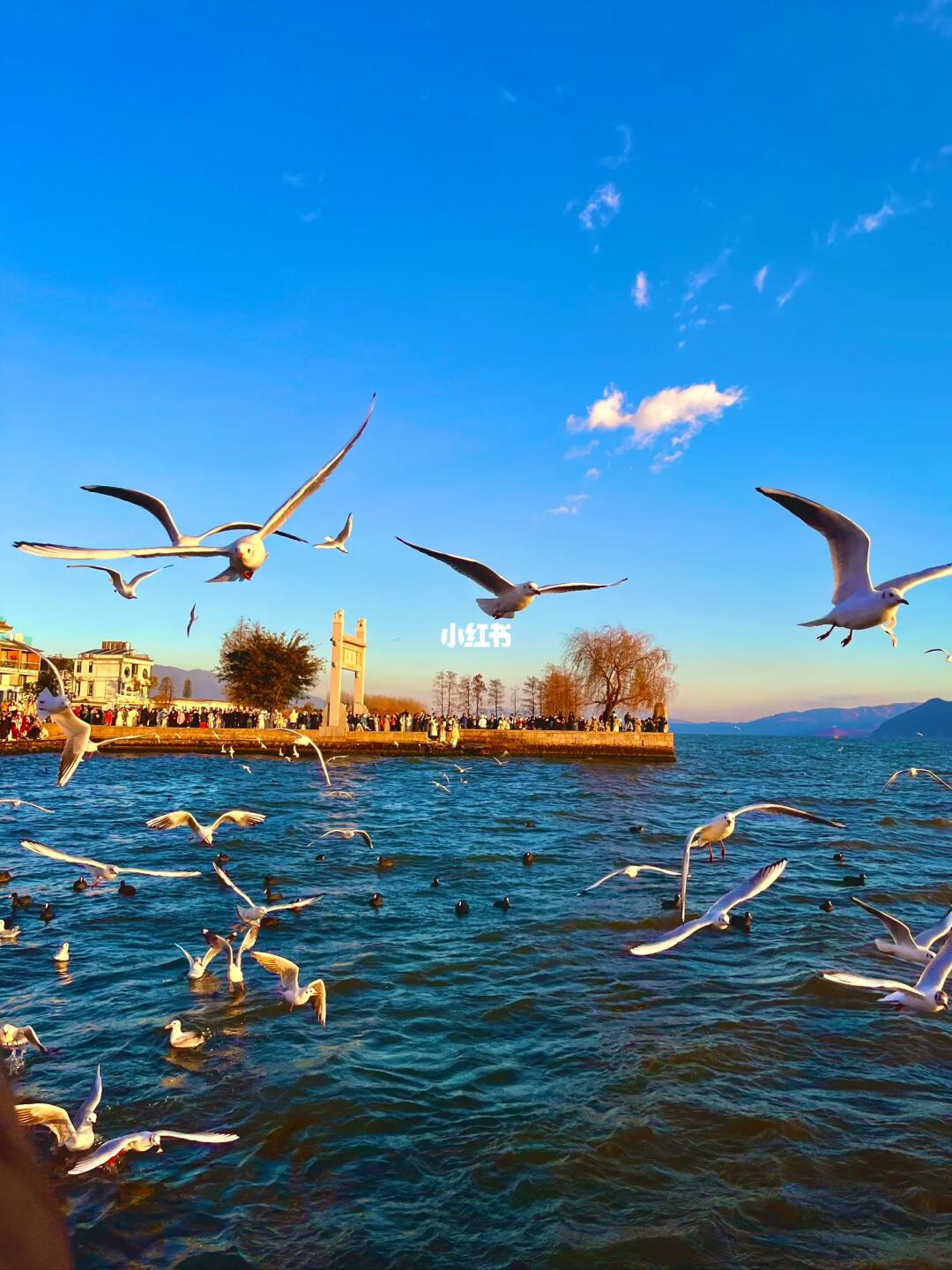 日出,海鸥,人群,简直就是一副五彩缤纷的油画,来大理一定要来龙龛码头