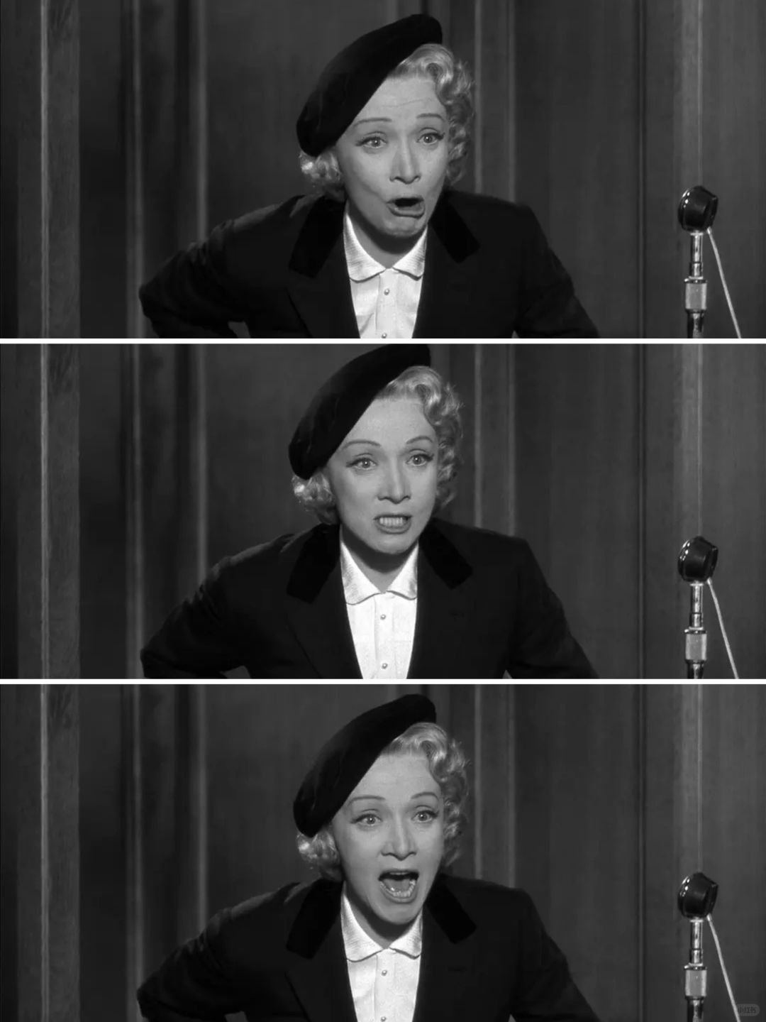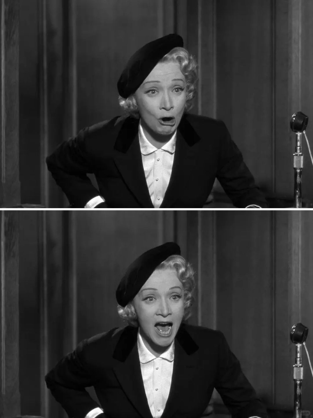 女主,玛琳·黛德丽,国际传奇影星和歌星,曾以女绅士的形象风靡世界,开启了中性风时代。(饰演这部电影的时候已经56岁,惊呆了)
