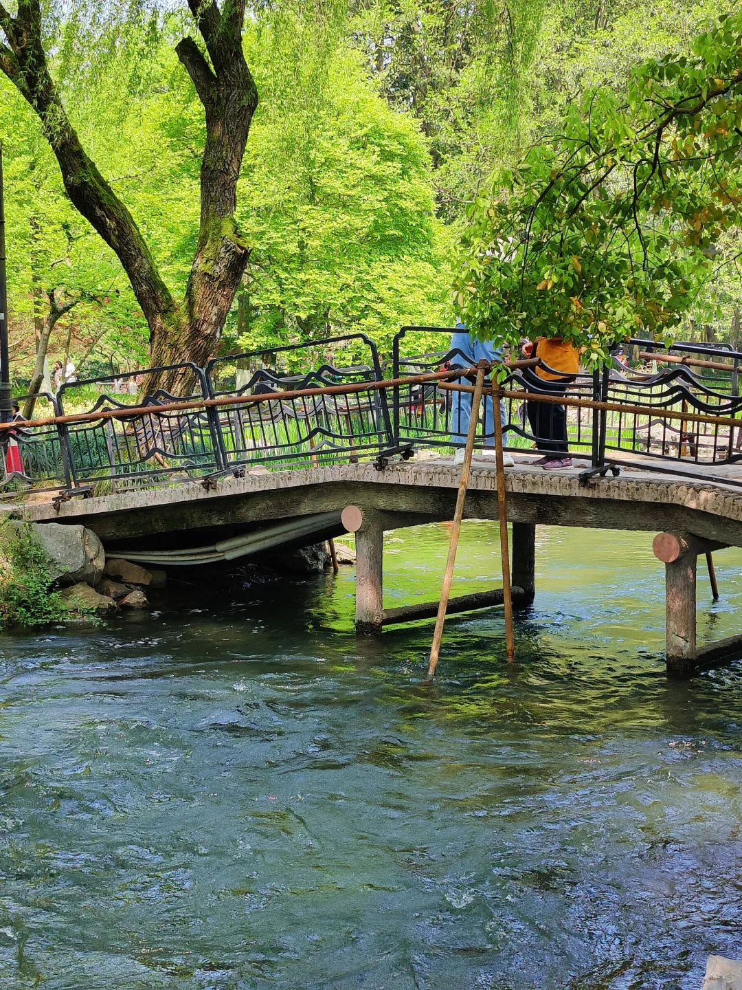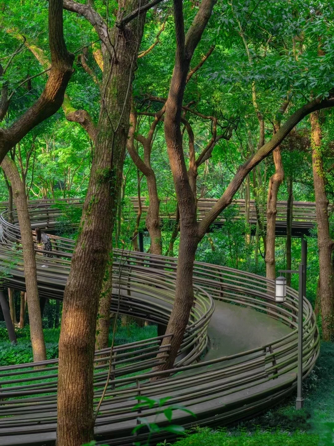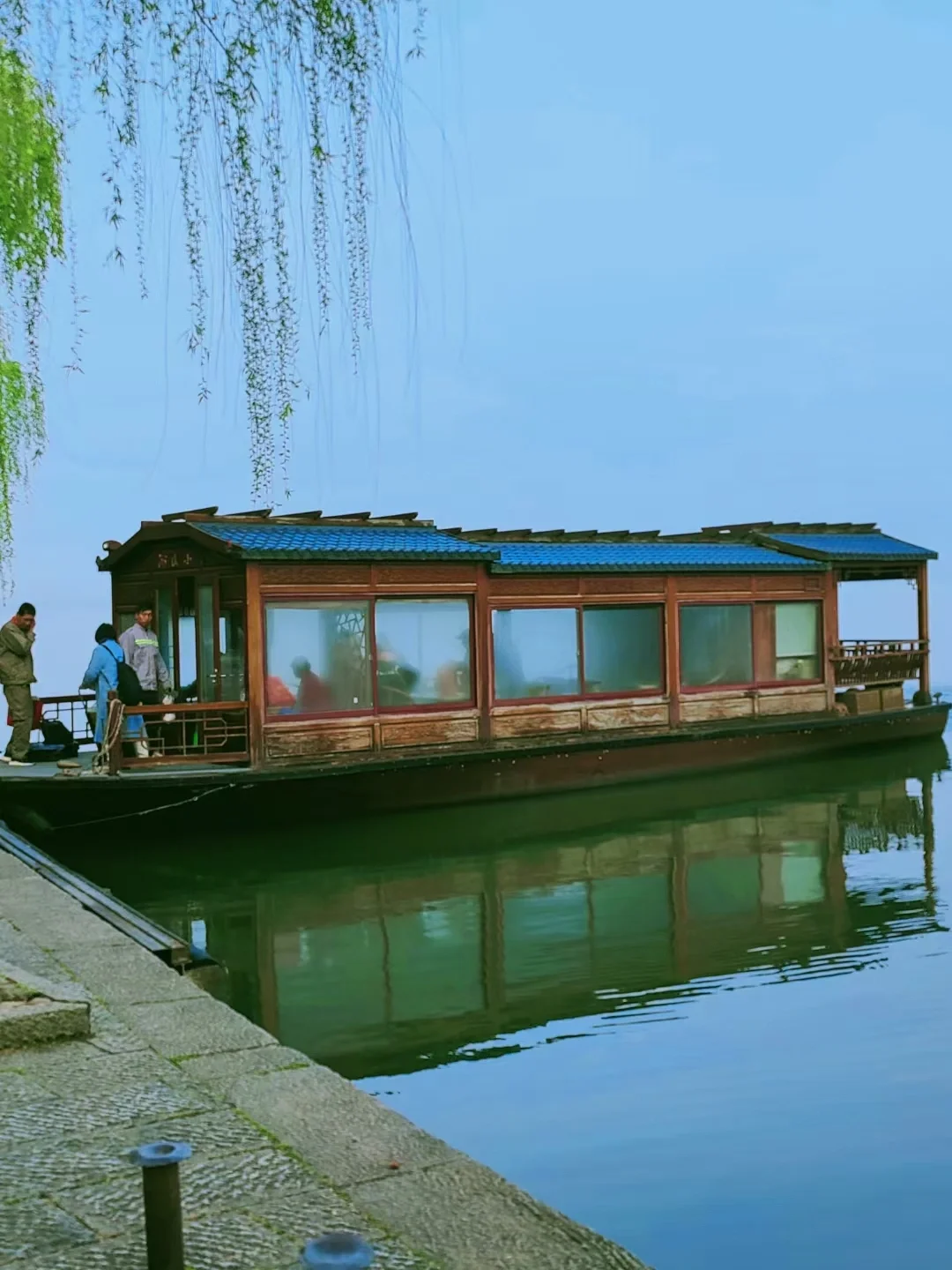 👉柳浪闻莺:几个参天古树屹立于湖水镜面,折射出倒影,鸳鸯成双游于其间,记得去打卡隐藏在附近的横河桥,穿汉服打卡绝绝子.