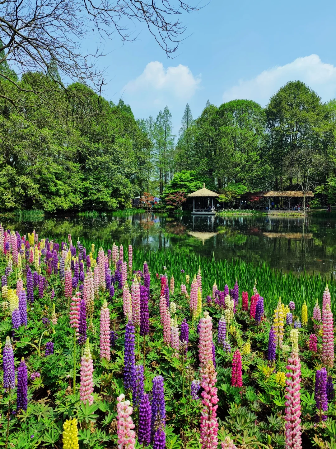 👉太子湾公园:第一眼看见的说潺潺溪水汇入西湖,初入太子湾,真的是童话世界,自带滤镜,咋样都好拍,虽然郁金香落了很多,但是还有其他的花仍在开放,真的绝,里面还有拍照打卡点📷