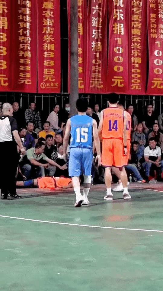 国内野球场镜头: 这哥们看着年龄不小了呀,怎么能一晃就跳起来了呢? 首先我想说,蓝队队员没啥问题,正常三威胁后突破,一点毛病也没有,不过他肯定没想到防守人跳那么高,还刮到自己的身体上了! 其次橙队队员,吃晃了,而且也没想到对方会钻过去。这样的场面都是没想到的! 最后,一般面对这么远的进攻球员,小碎步上去干扰就好了,要不然跳起来就失位了!而且不能朝着人家身体上去跳,而且应该侧面,这样也能躲开进攻球员,对对方和自己都是一种保护! 这下子摔得不轻,脖子个左肩膀都受伤了!