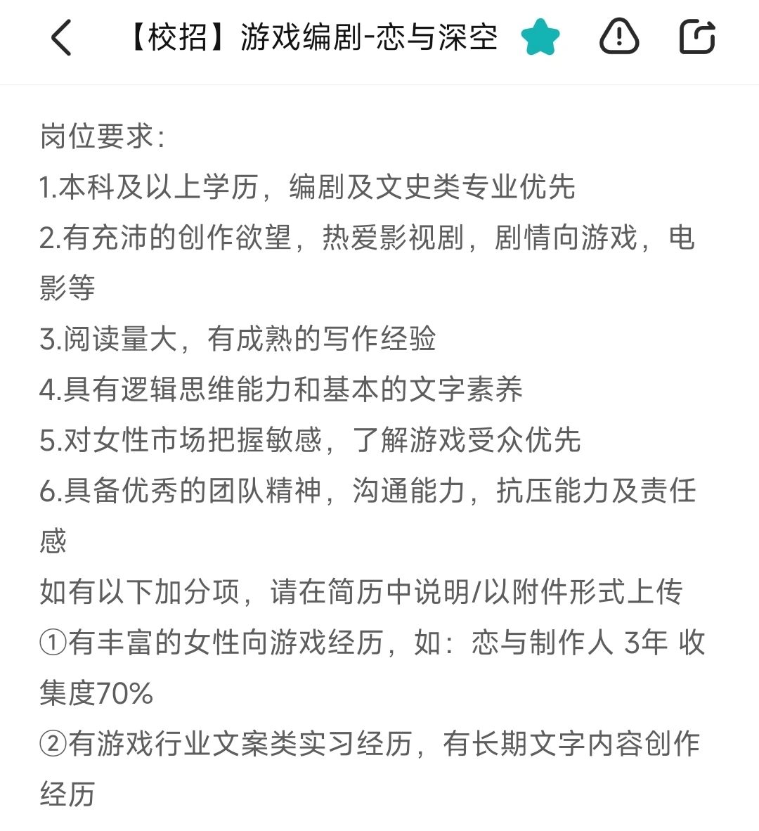 〔恋与深空〕招聘游戏编剧啦!💥
